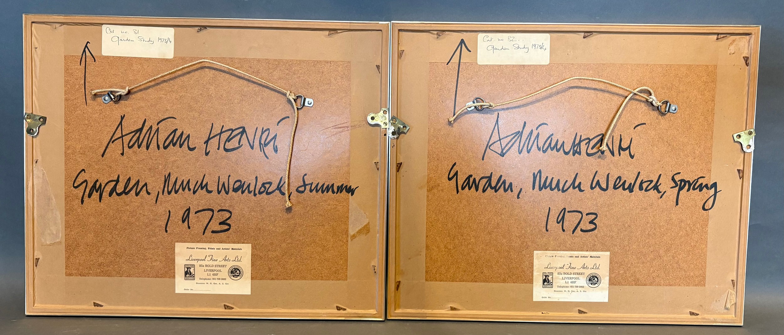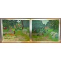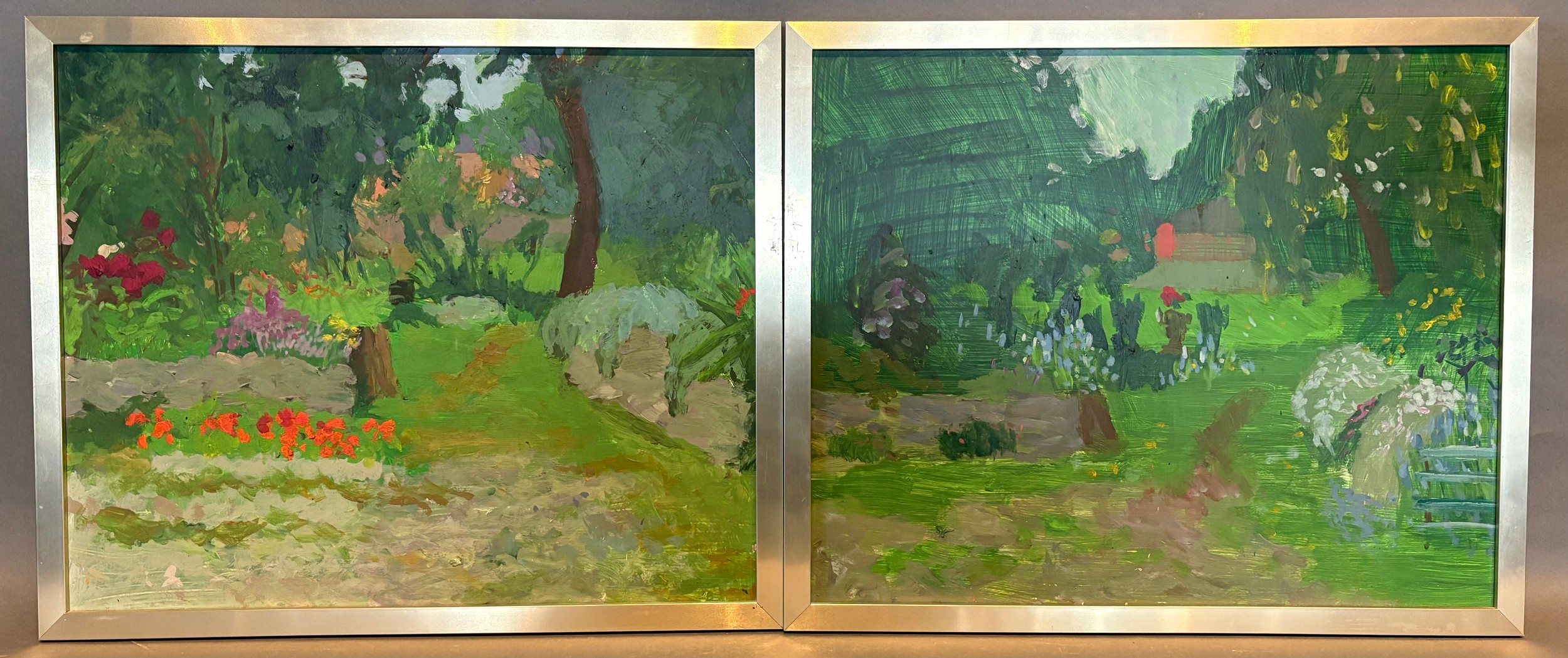 Adrian Henri, Garden Studies, a pair of oils on board, 34cms x 42cms