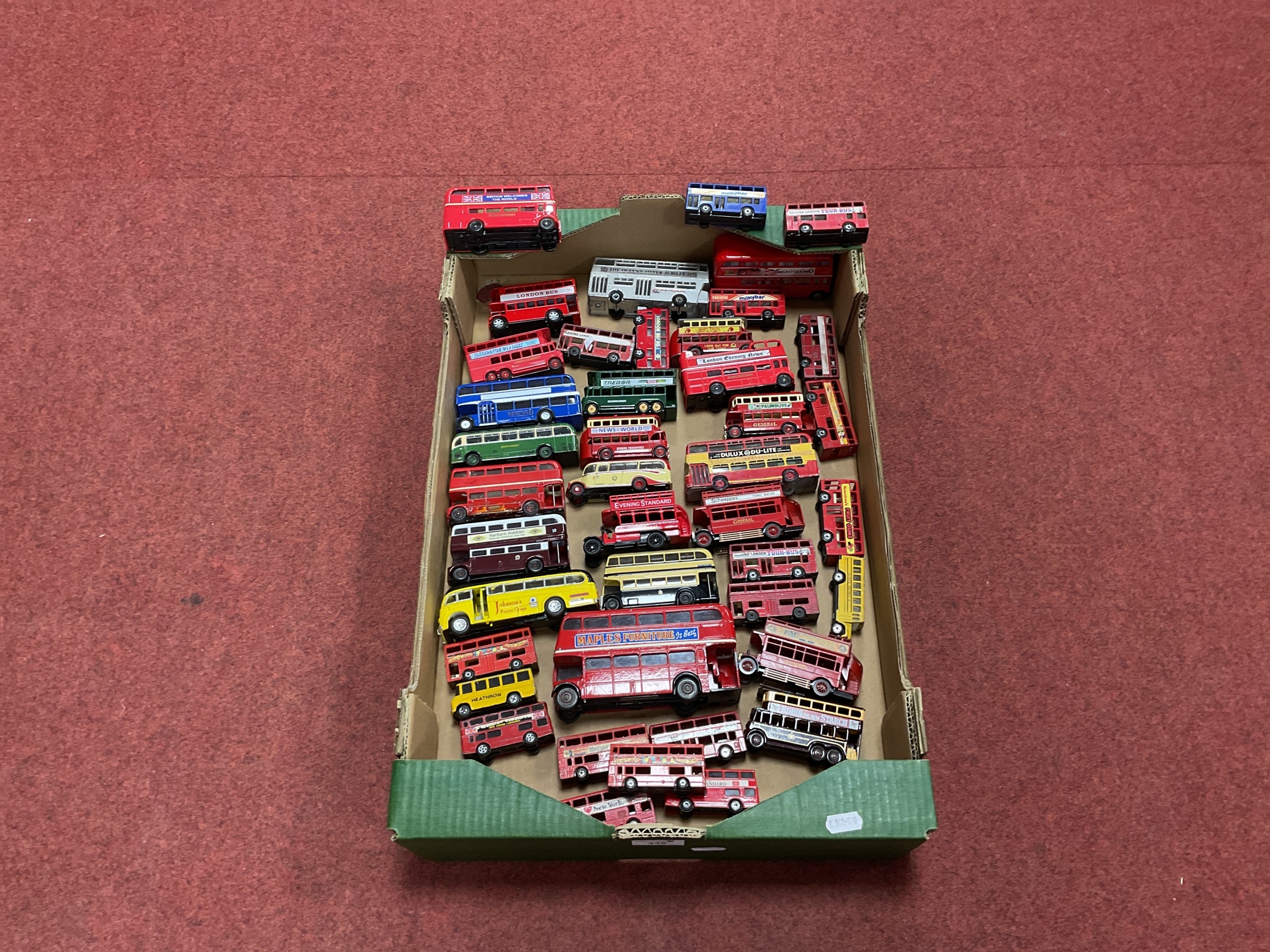 Approximately Forty Diecast, White Metal Model Buses by Solido, Matchbox, EFE, Dinky, Lledo and other. Playworn.