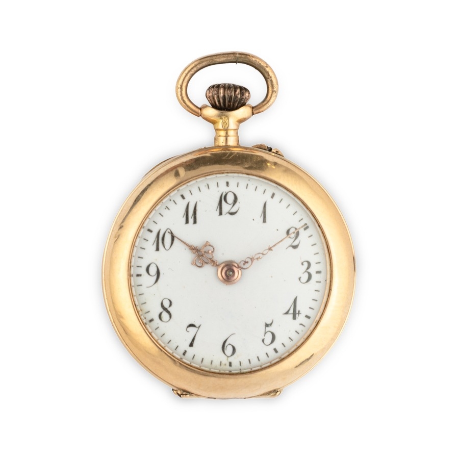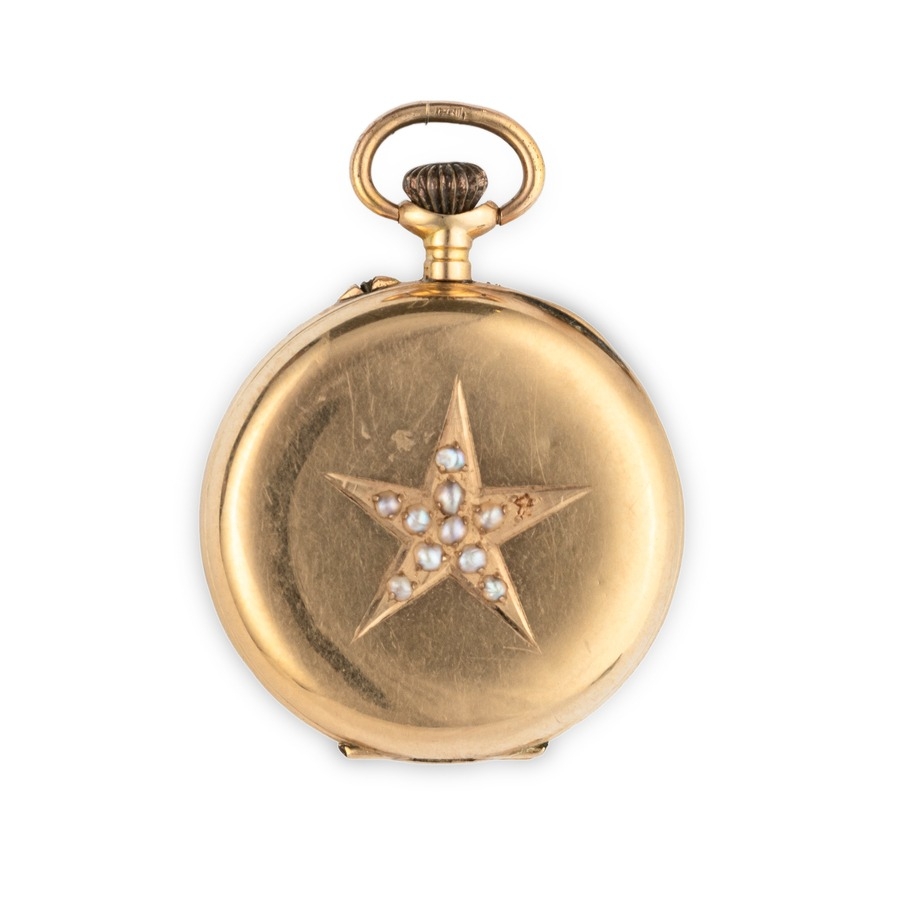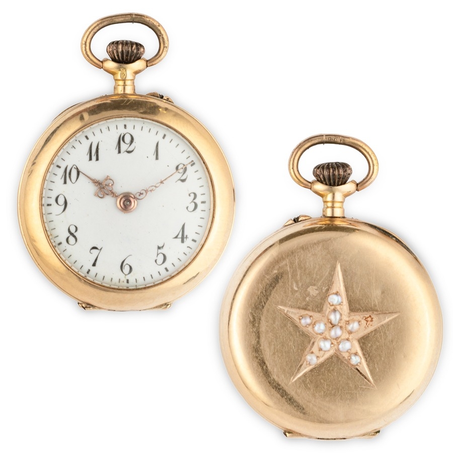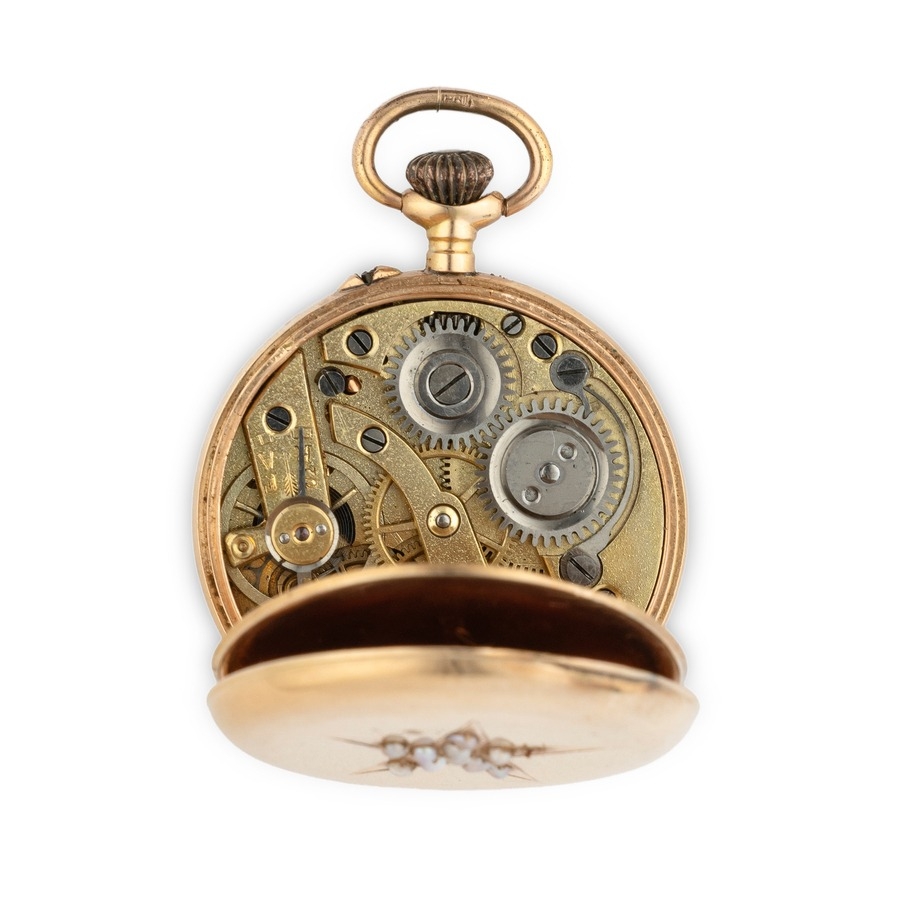 A 18K YG LADY POCKET WATCH WITH MICROPEARLS, FRANCE 1870 CIRCA