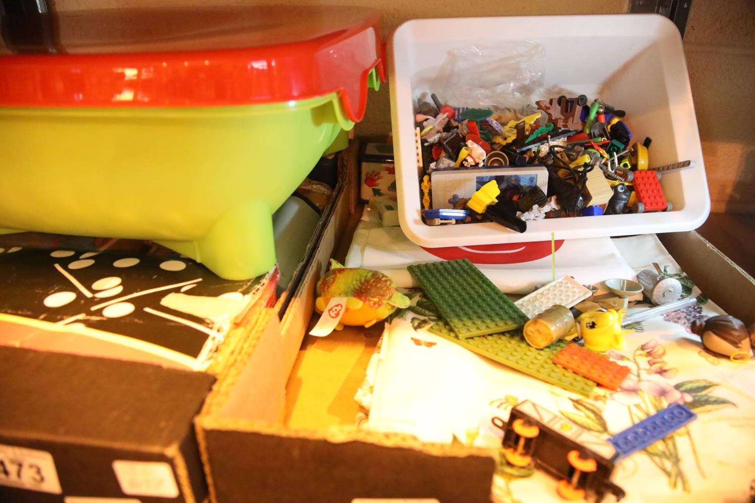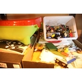 Two trays of games including new sand table and table tennis net, bats and balls. Not available for in-house P&P.