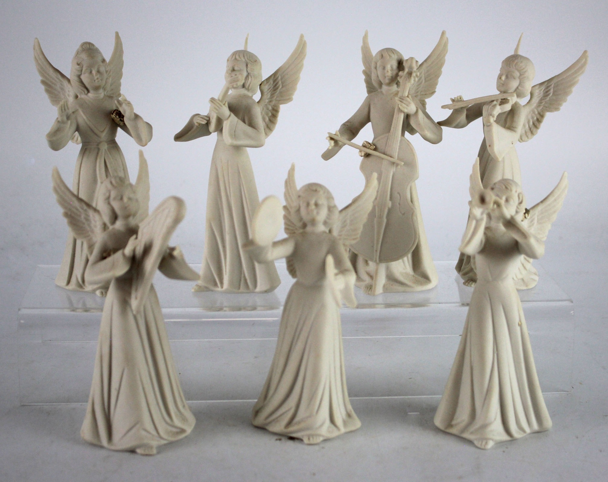Dresden. Seven Dresden porcelain angels, each playing an instrument, height