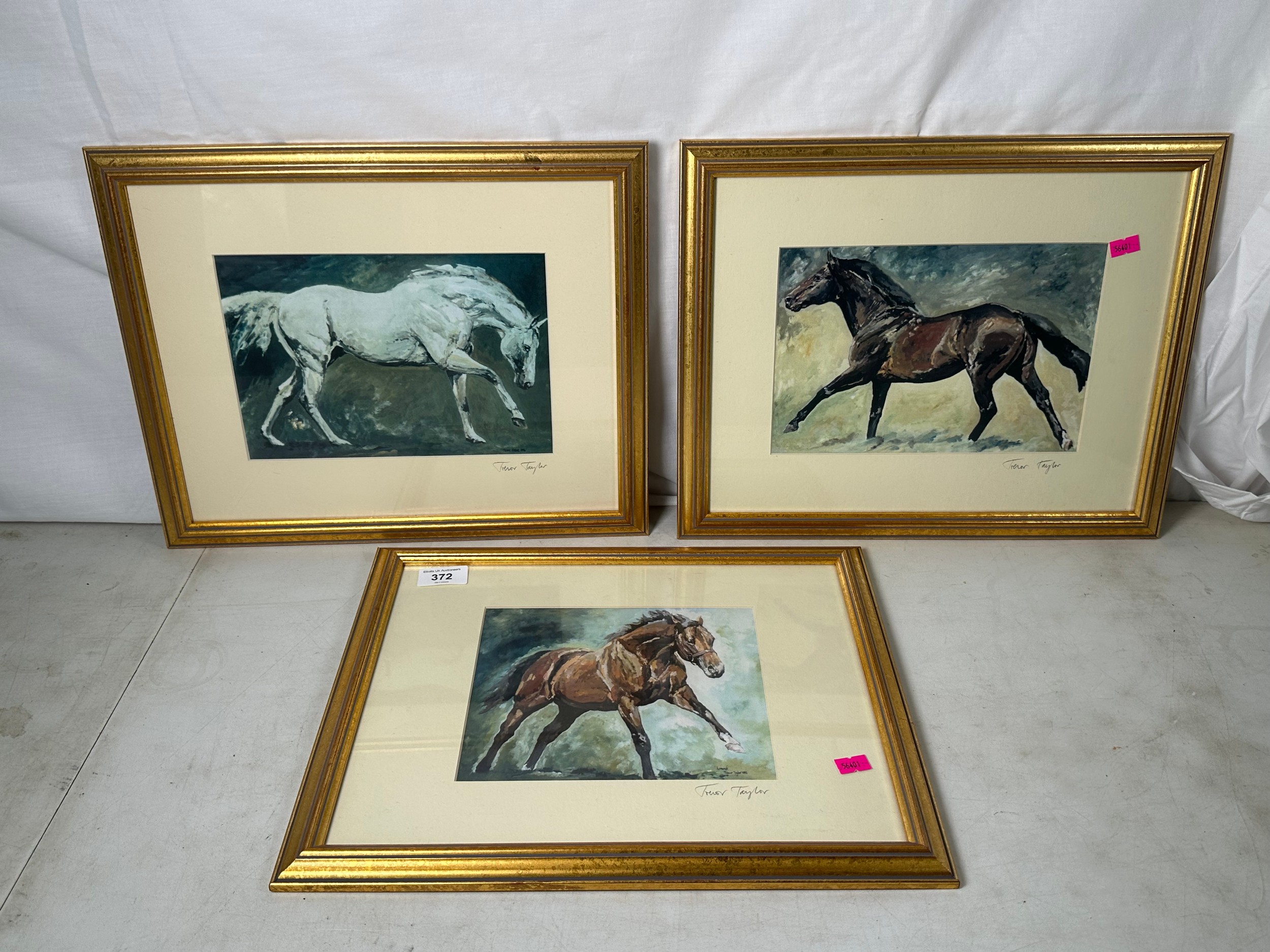 Three framed prints of Horses, pencil signed Trevor Taylor to the mounts
