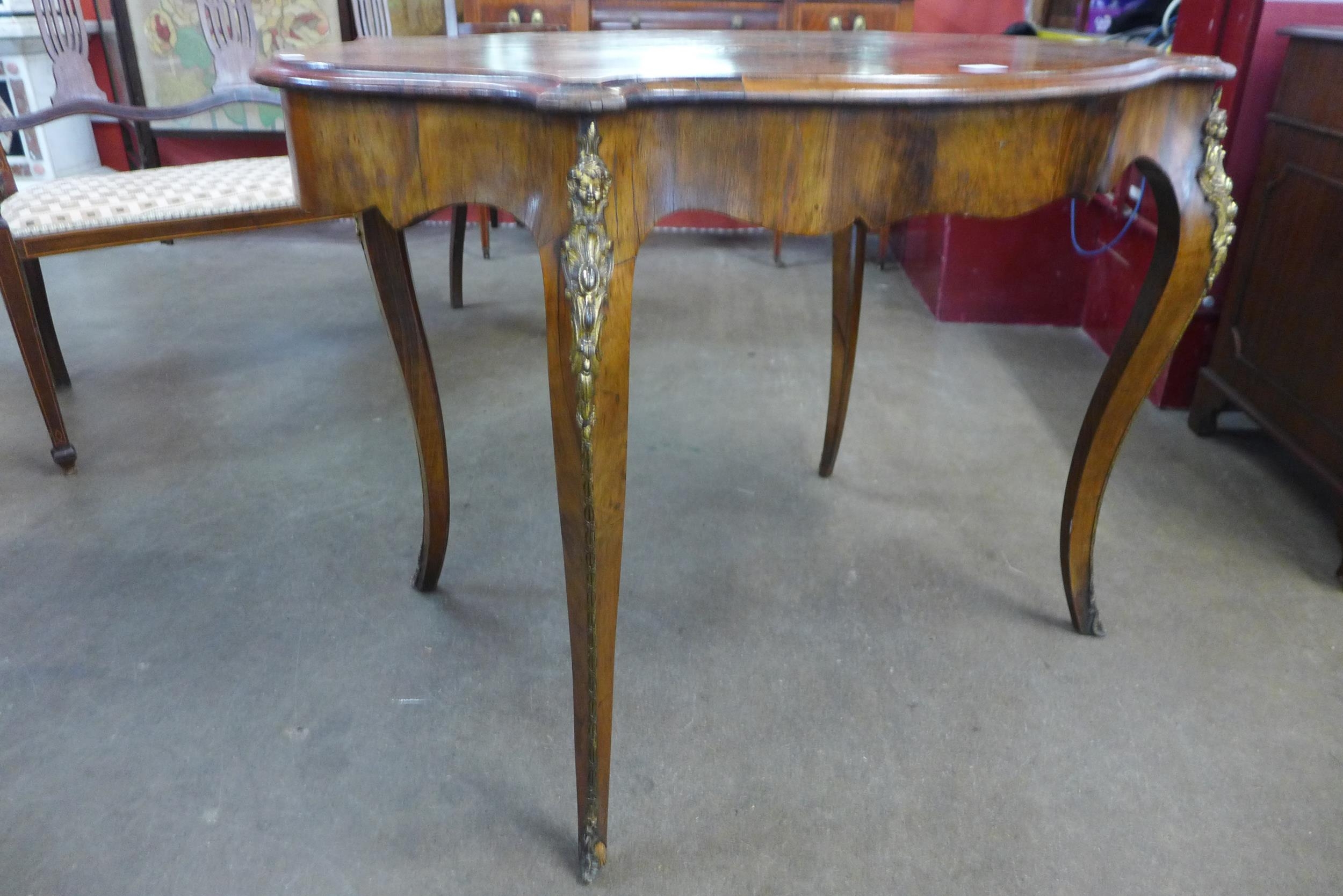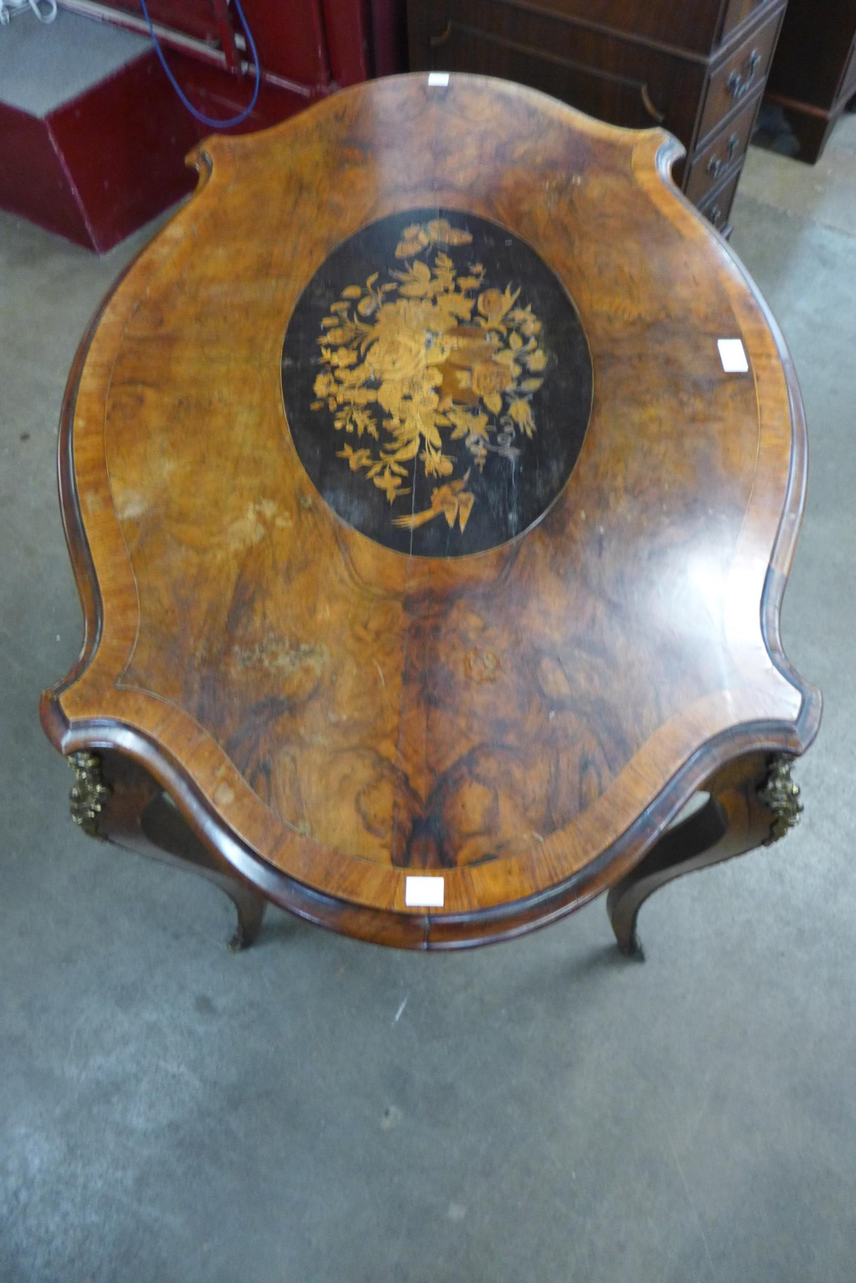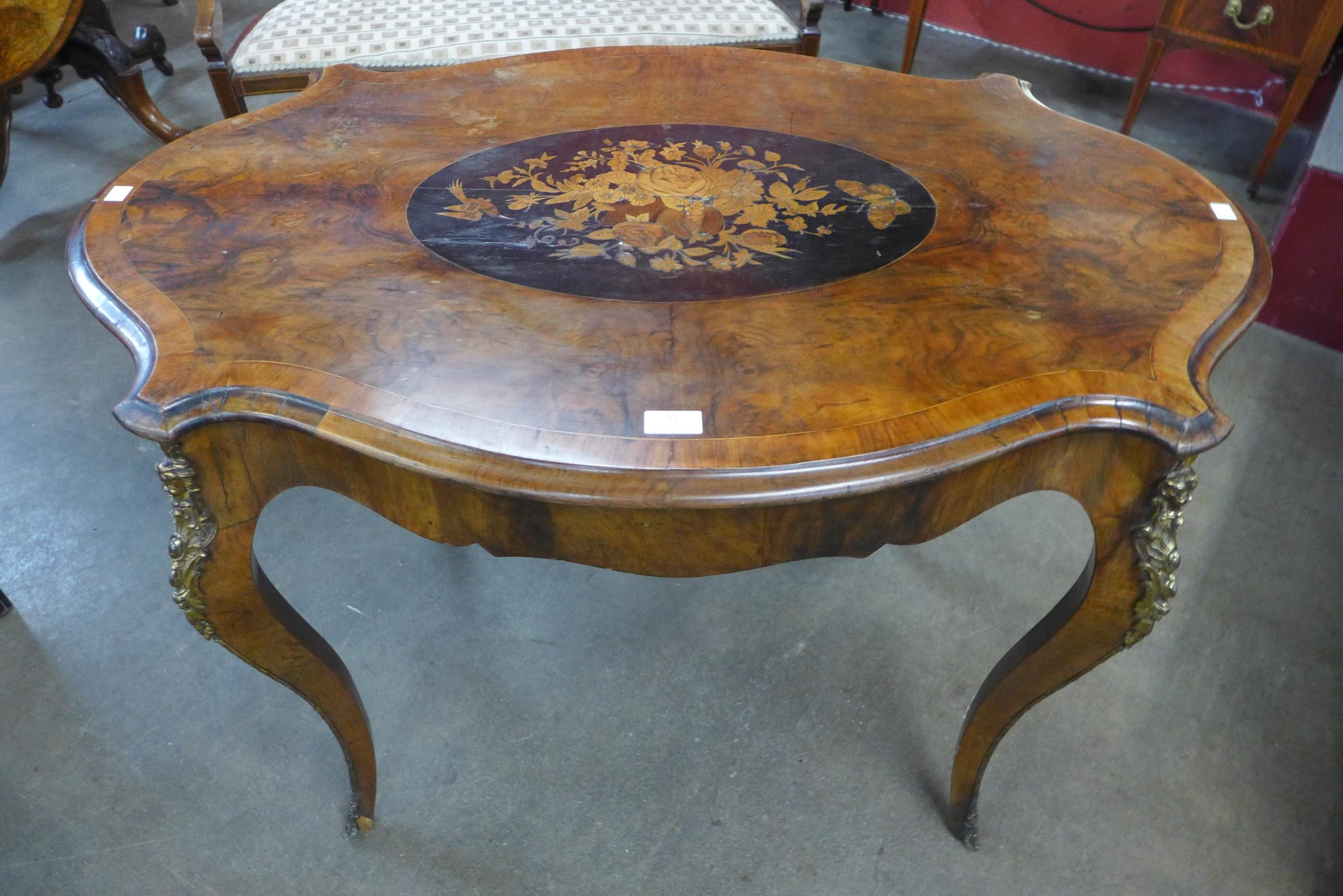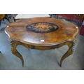A Victorian marquetry inlaid walnut and gilt metal mounted serpentine centre table