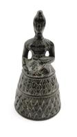 Edwardian hexagonal bronzed metal salver decorated in relief with a border of flowers, 19cm diameter