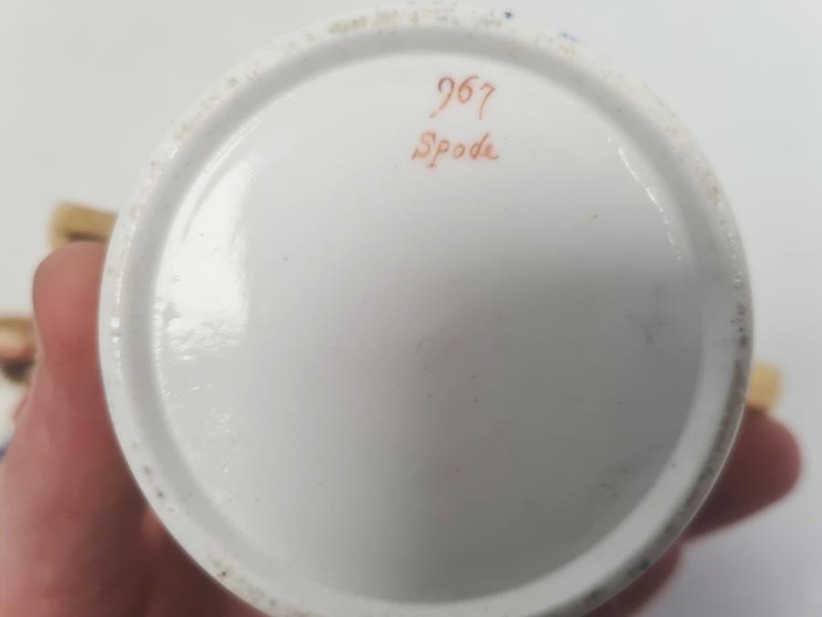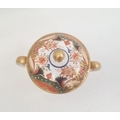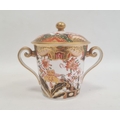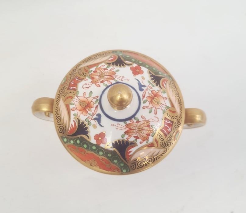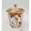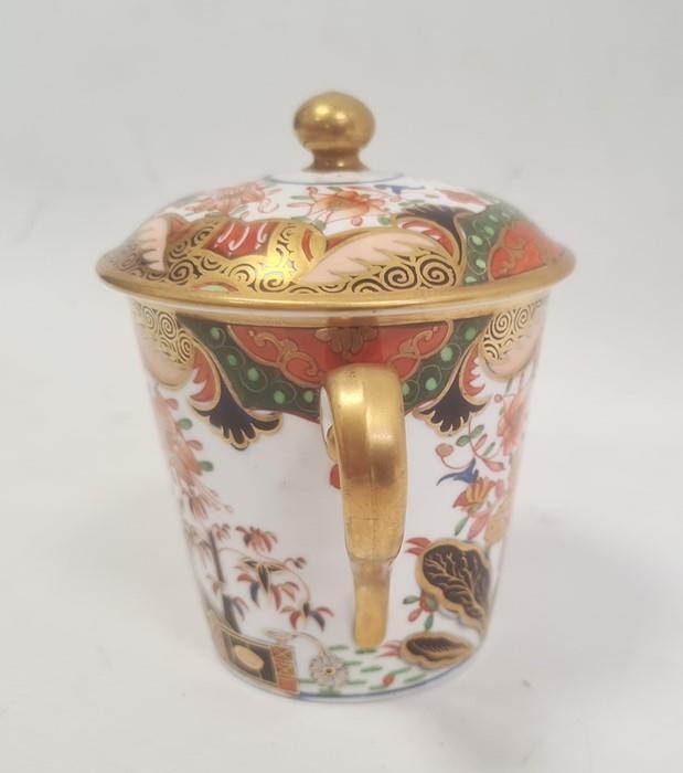 Spode two handled cup and cover, circa. 1820 of tapering form with scroll handles decorated in the Imari palette, painted pattern number 967 to base, 12cm high.