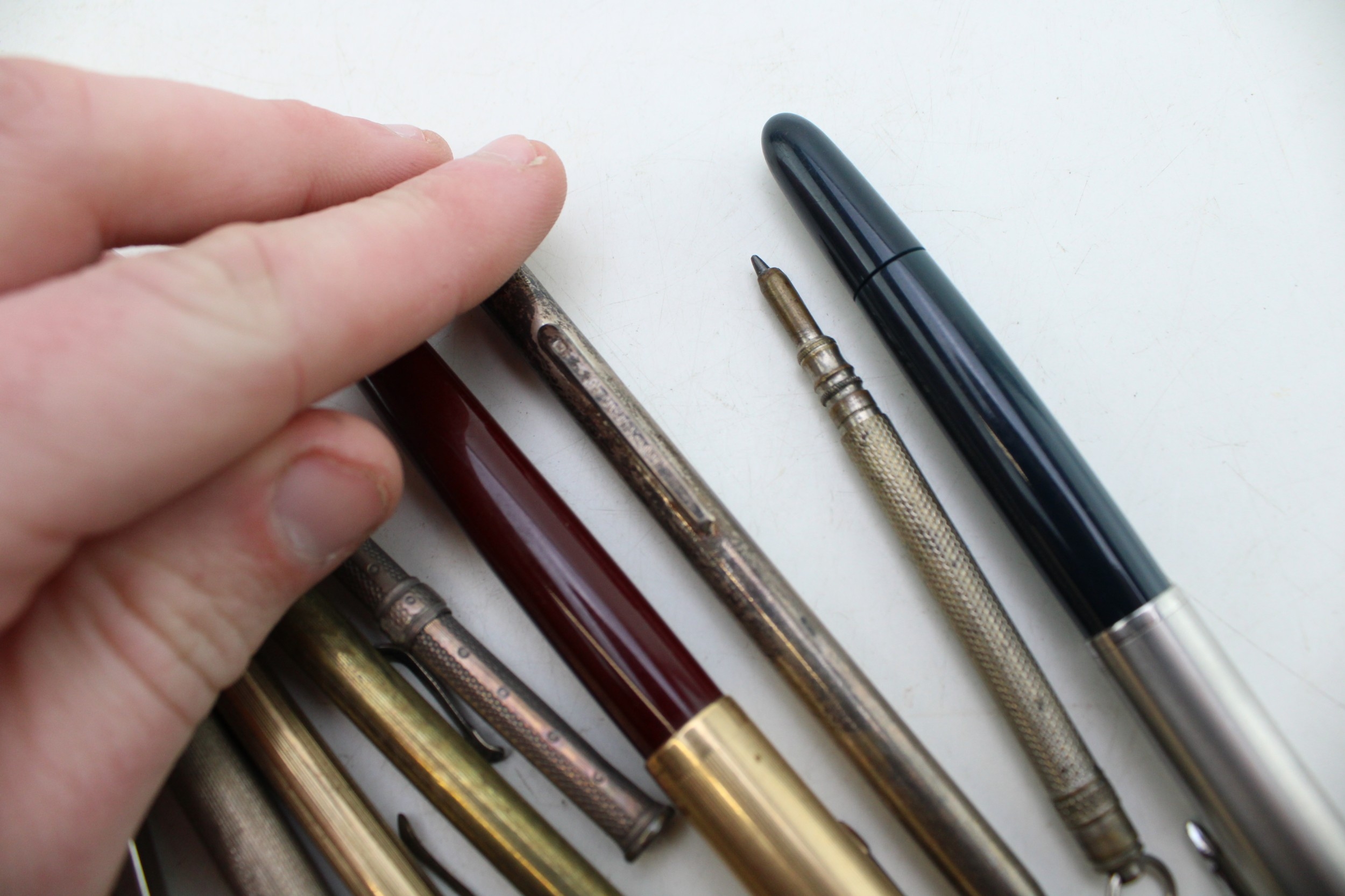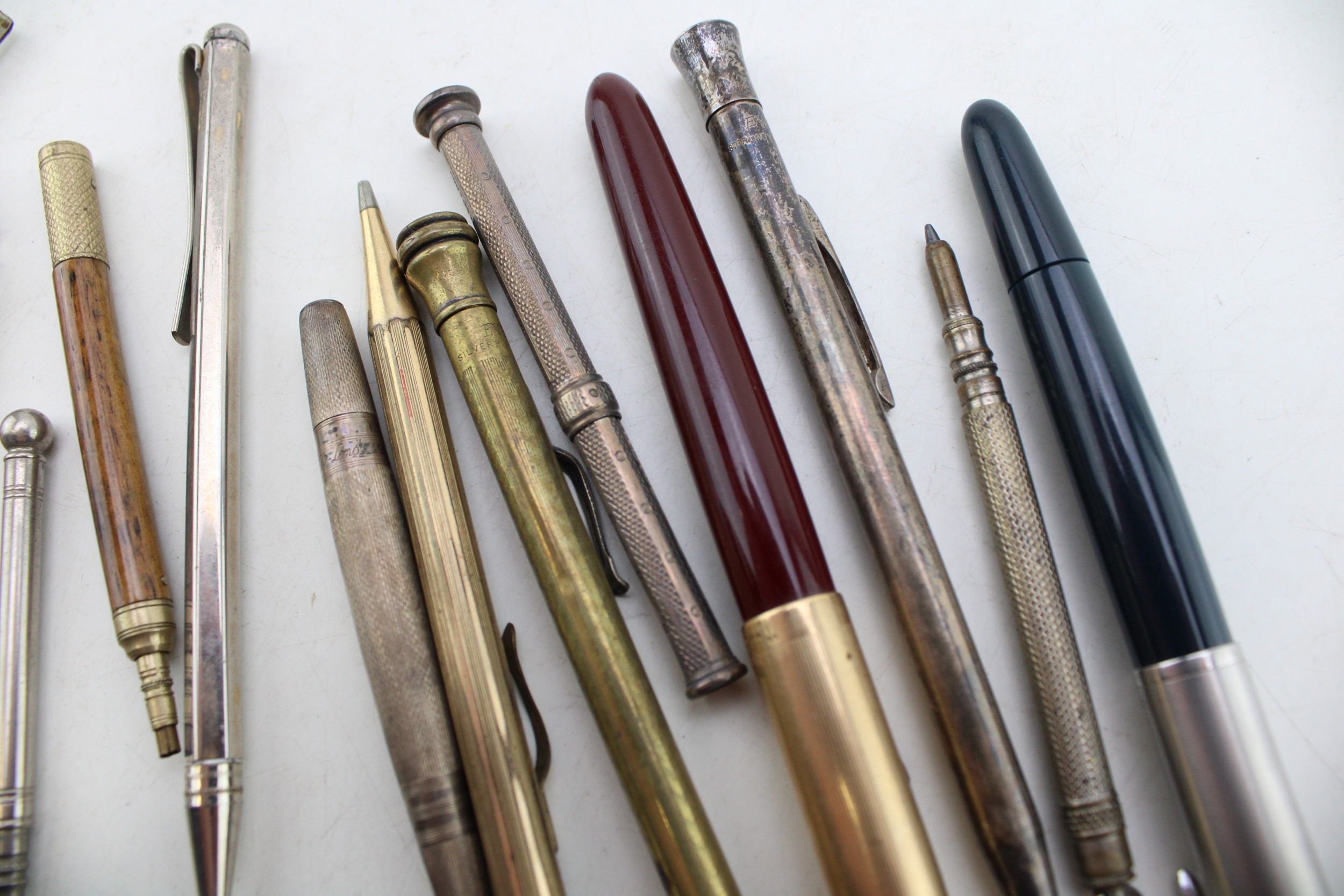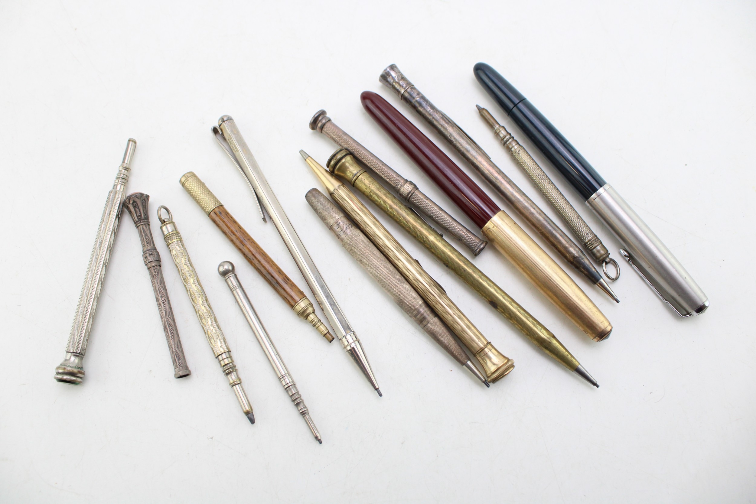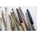 Vintage fountain pens to include two Parker examples together with silver propelling pencils and other similar examples, (Qty).