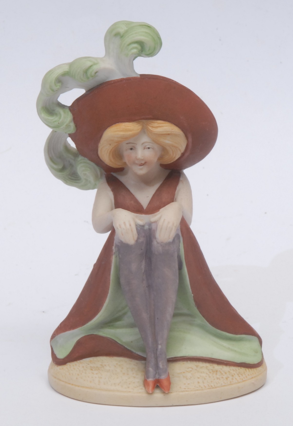 An Art Deco bisque ware figure, of a Suffragette, painted in polychrome, 11.5cm high
