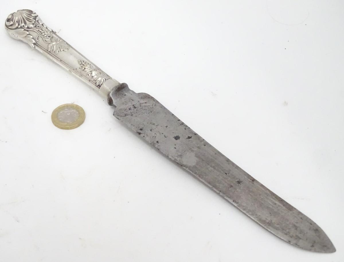 A white metal handled knife