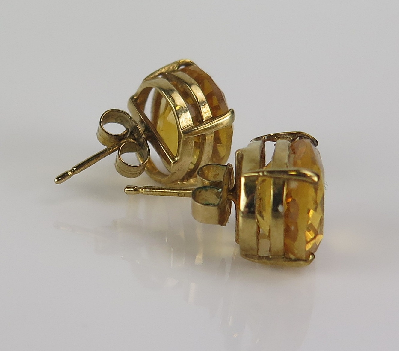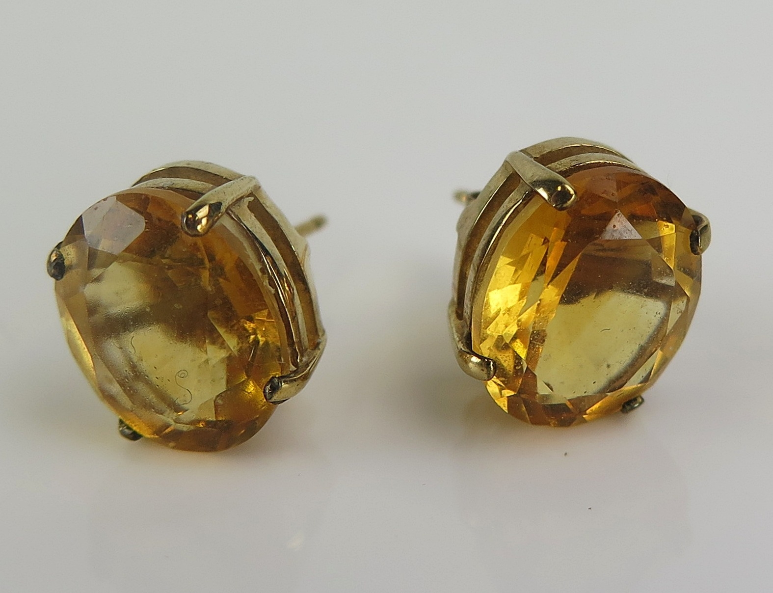 A Shipton & Co. pair of citrine stud earrings in 9ct yellow gold mounts, 12x10mm stones, hallmarked, 3.68g