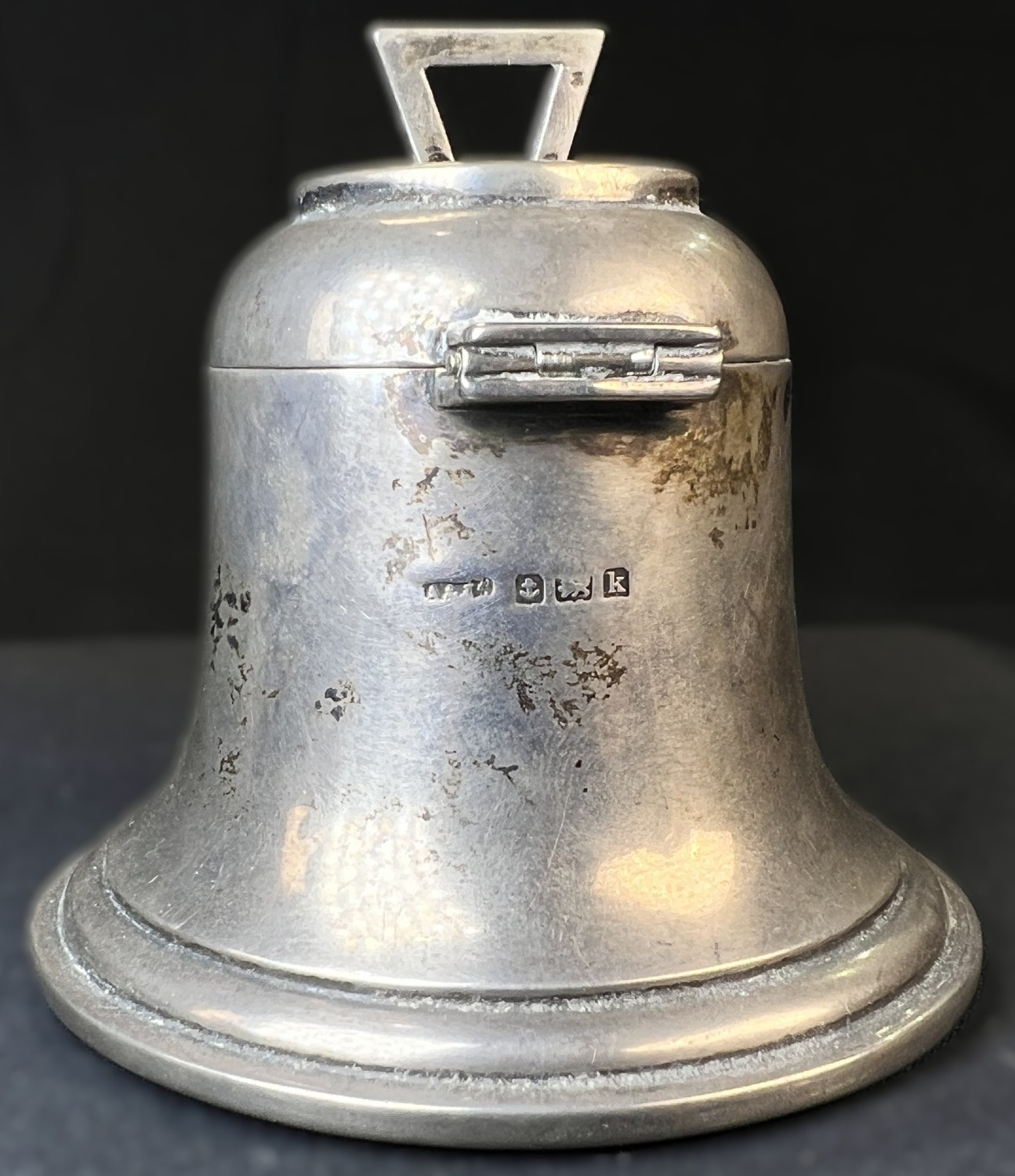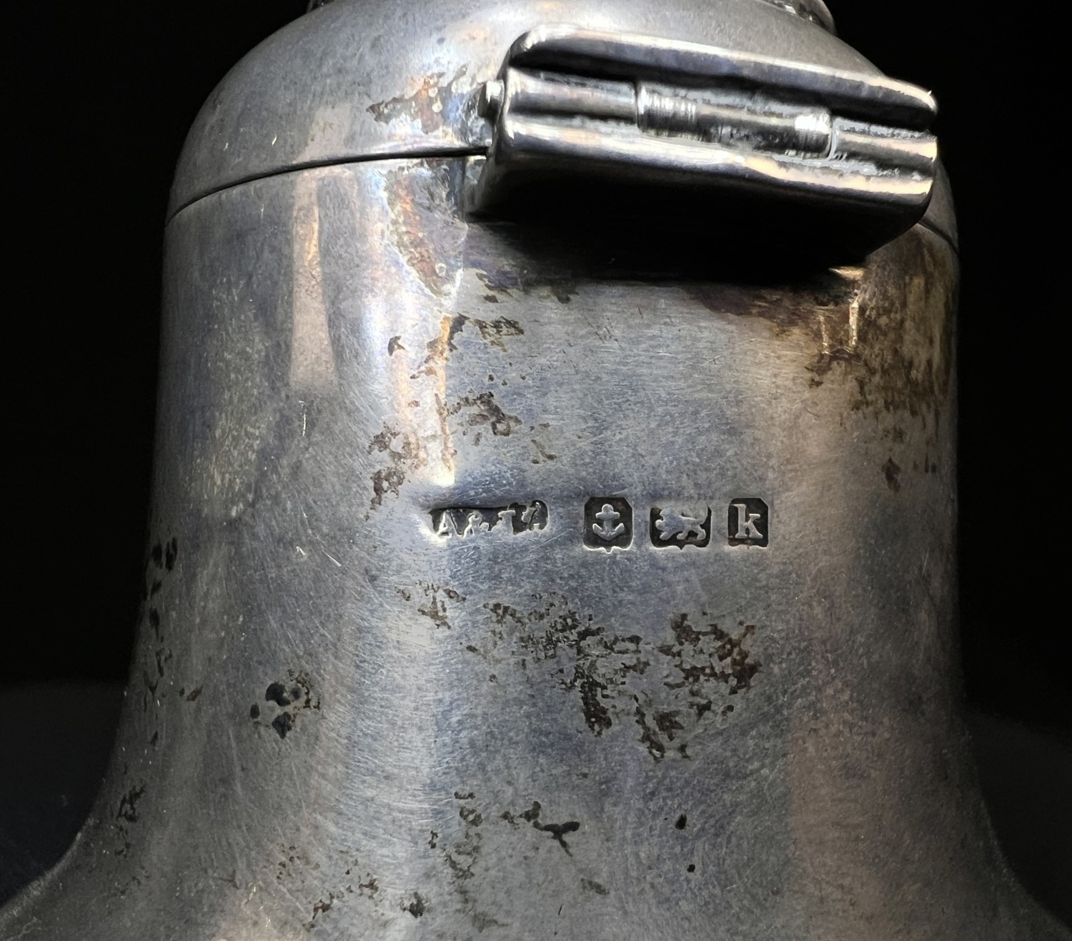 A hallmarked silver inkwell in the form of a bell, Birmingham 1900