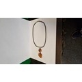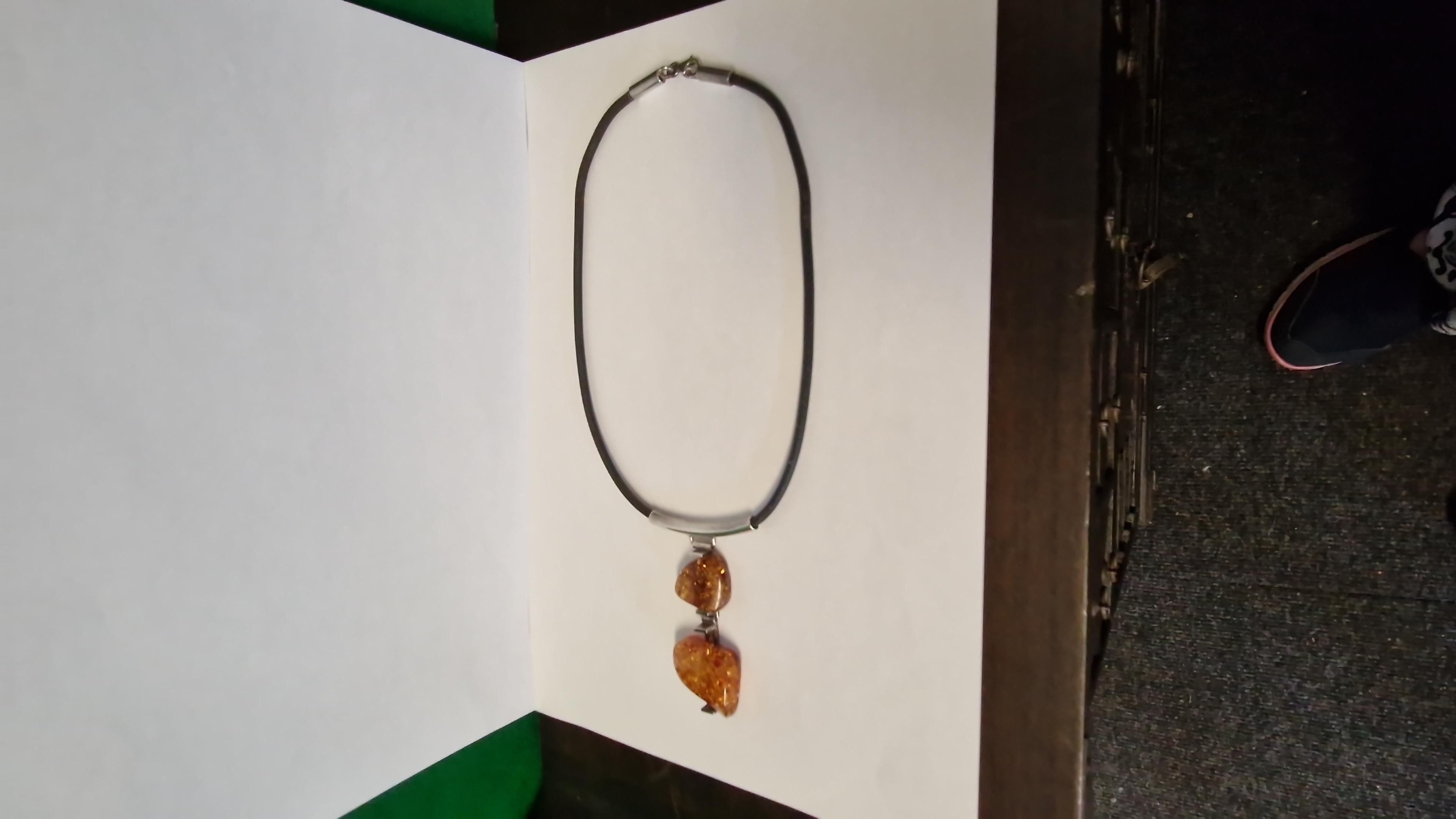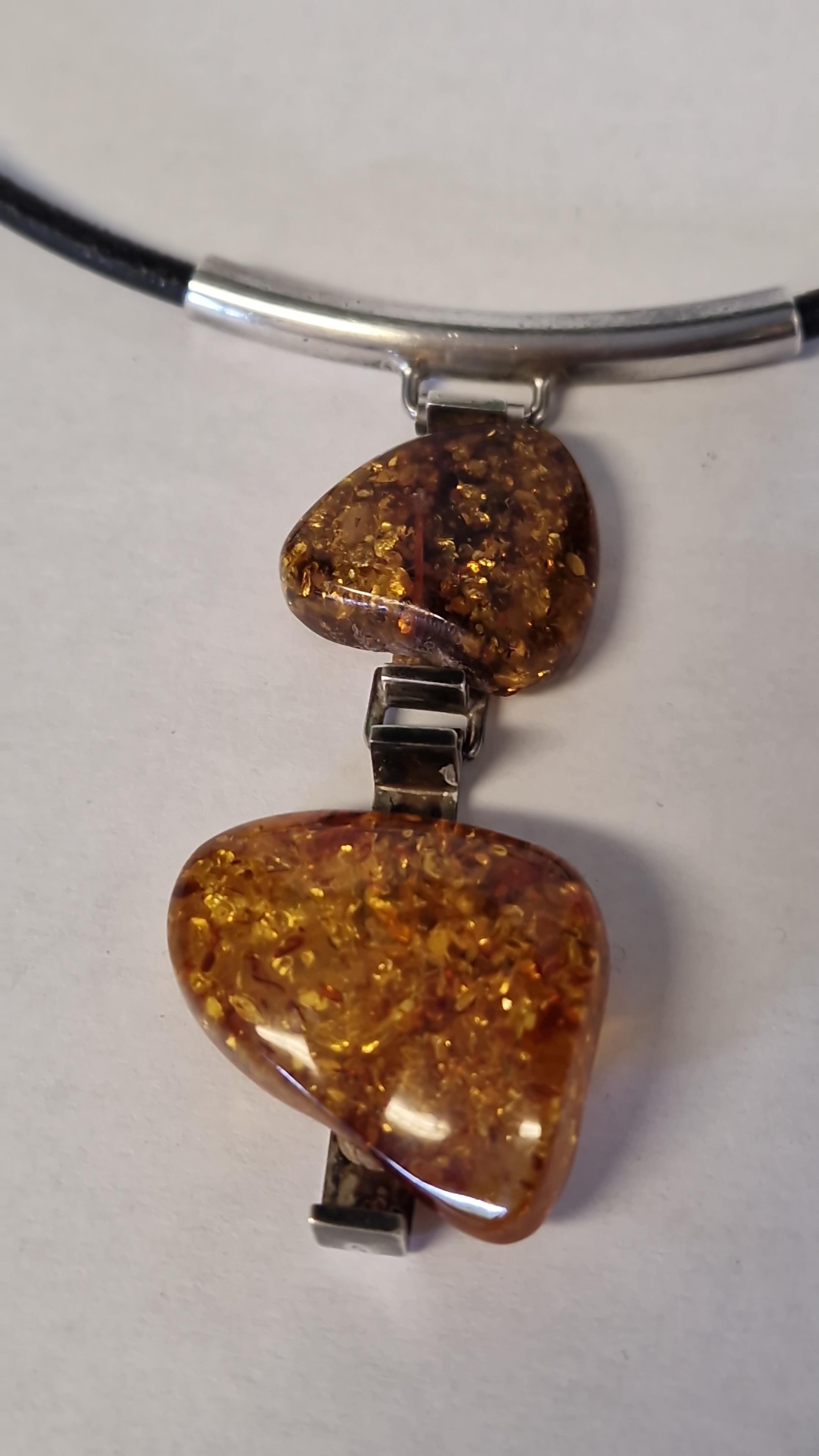 SILVER & AMBER LEATHER NECKLACE