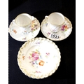 Two trios of saxe hand painted porcelain coffee cans and pla...