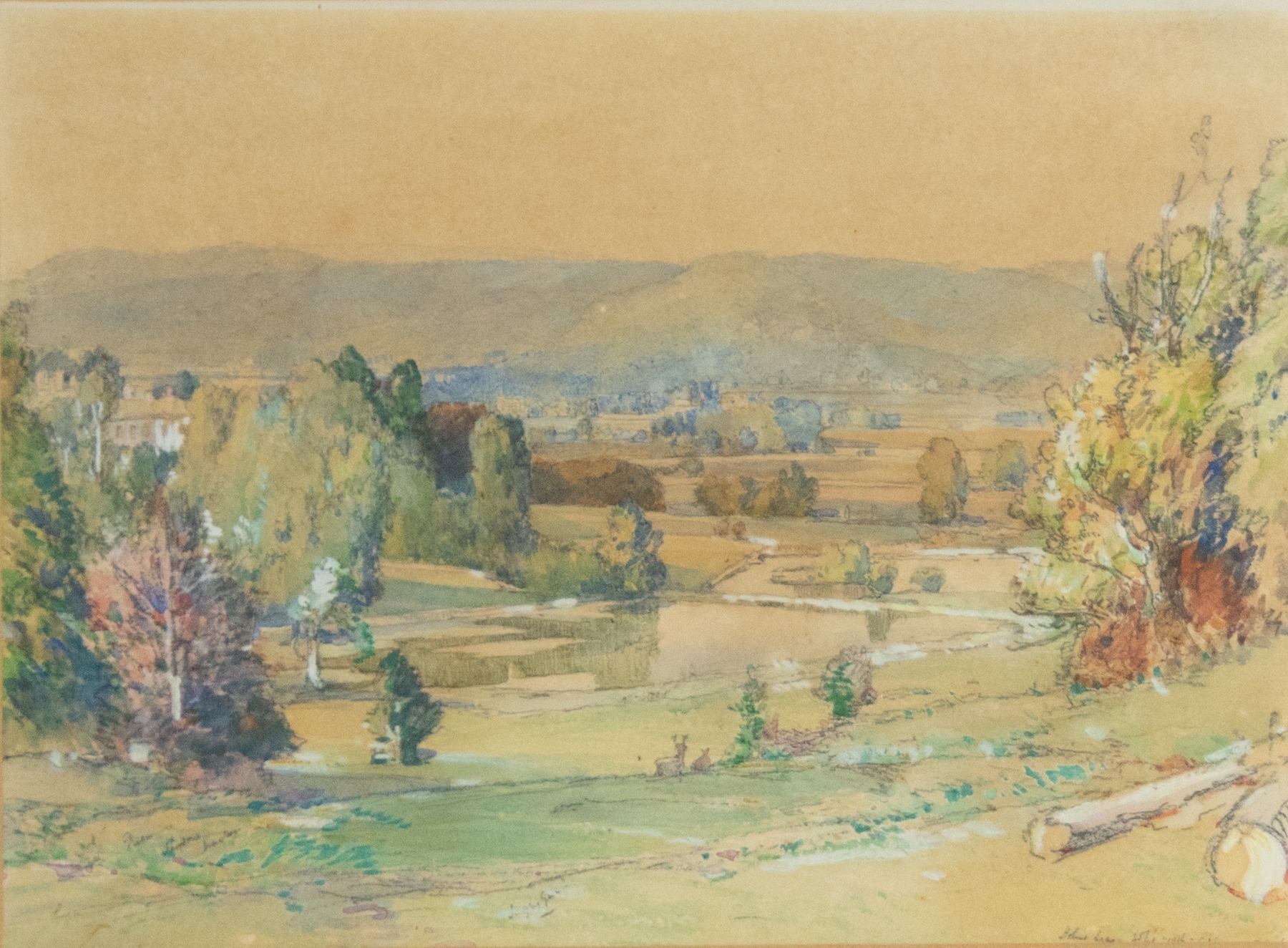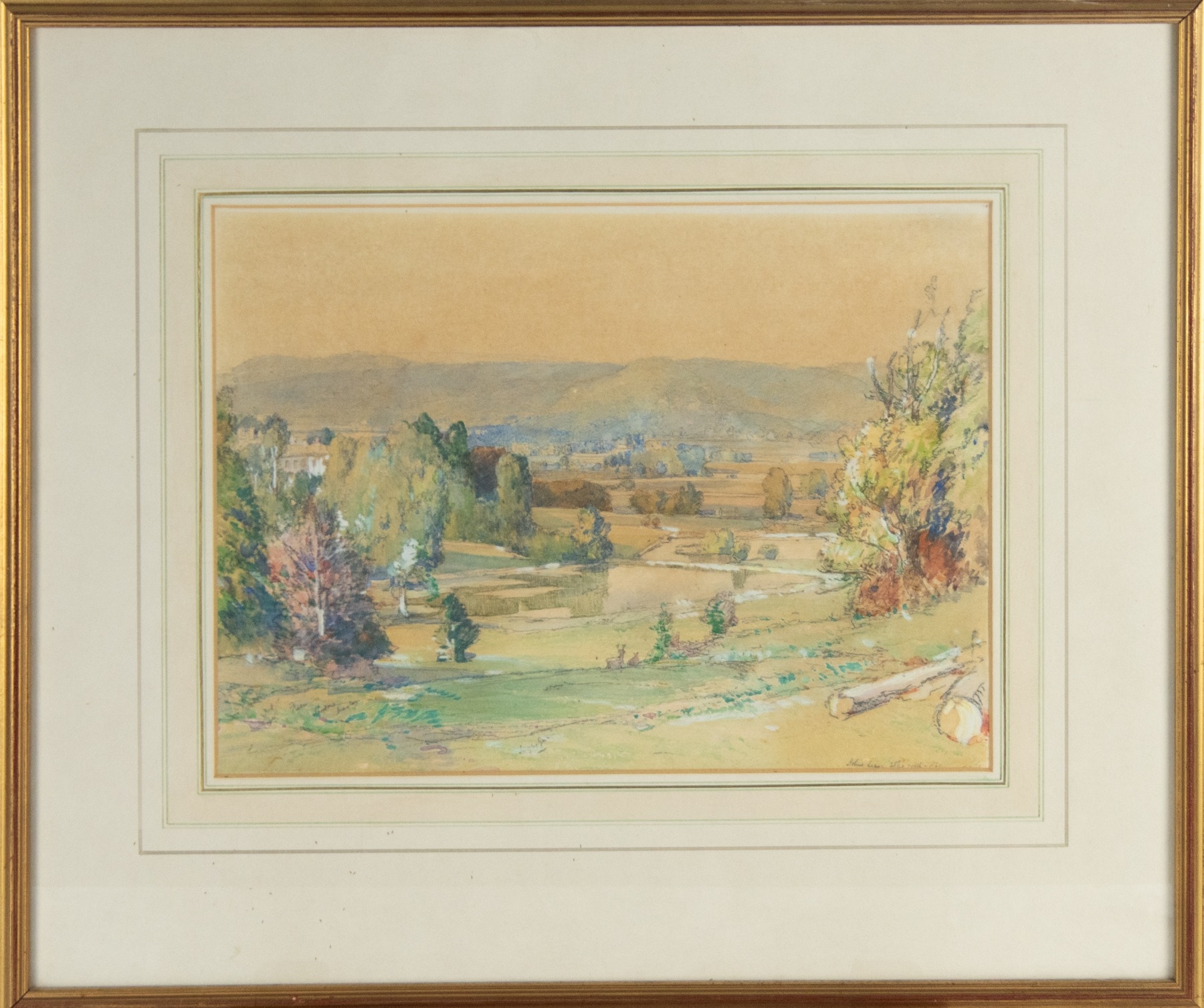 Signature, title and date illegible, partly obscured by the mount, attributed to ROYAL EXCHANGE ART GALLERY, LONDON, label verso