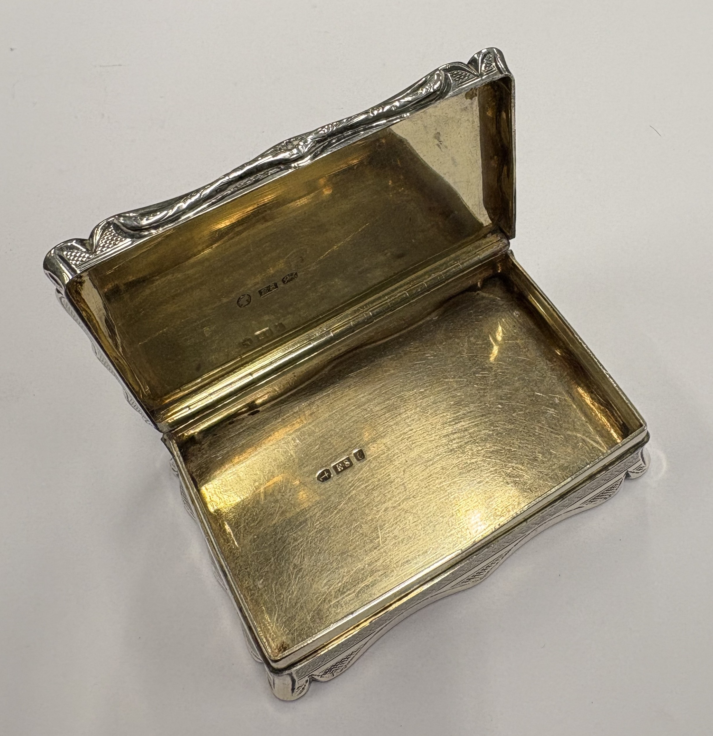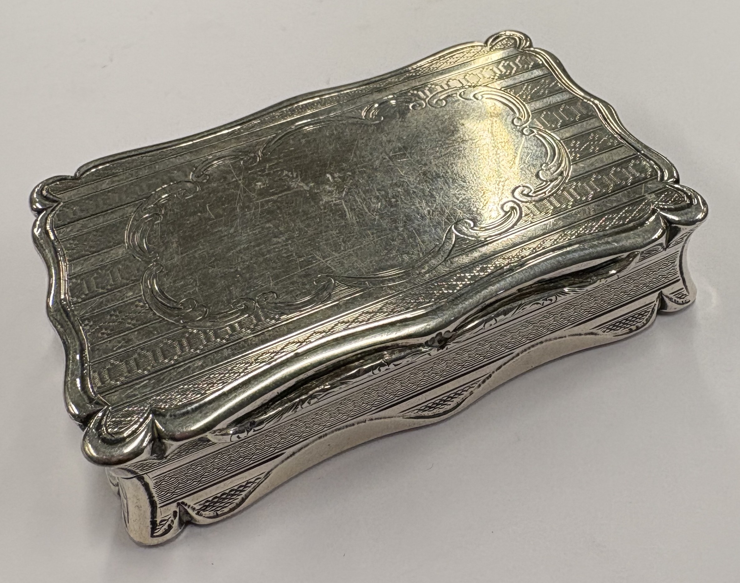 A Victorian silver snuff box with engine-turned decoration. Birmingham 1851. By Edward Smith. Approx. 109 grams. Est. £300 - £400.