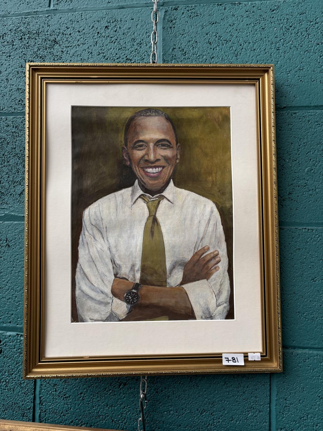 Framed original oil of Barack Obama (45x56cm)