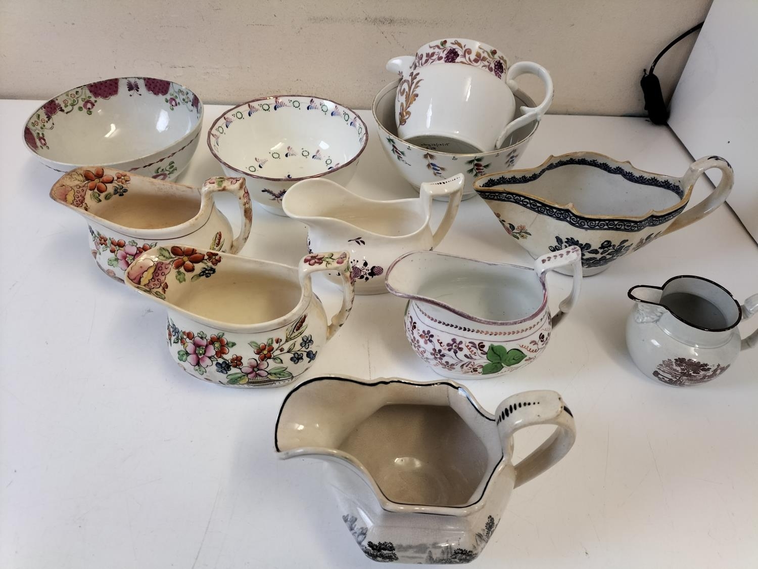 Interesting Collection of 19th Century Cream Jugs and Slop Bowls.