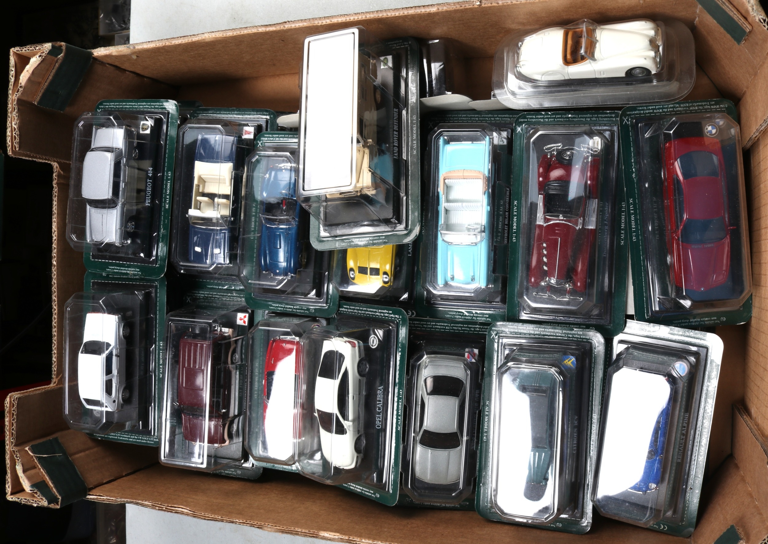 34 magazine issue 1/43 vehicles. Including- Land Rover Series III. Peugeot 404, Renault Alpine, Citroen 2CV, Volkswagen Golf GTI, Nissan Skyline GTR, Toyota Celica, Alfa Romeo Giulietta, Mitsubishi Pajero, Pontiac GTO, Renault 5 Turbo, Lamborghini Miura, BMW 850i, Cobra 427, Chevrolet Bel Air Convertible. Opel Calibra, Dodge Viper and a Morgan Plus 4. Most as new still sealed in their packets. £70-90