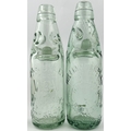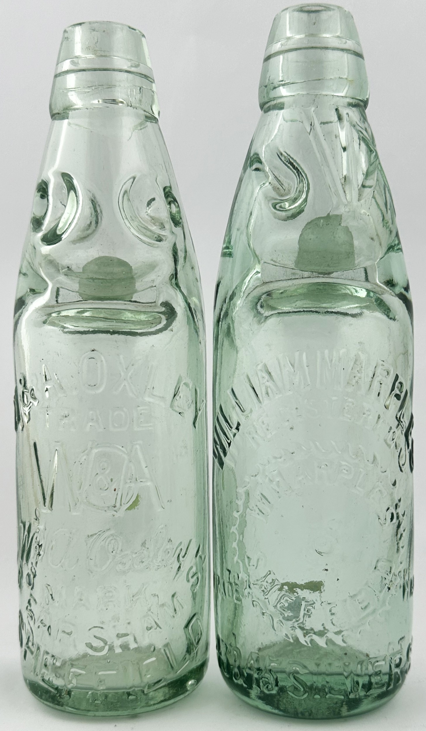 SHEFFIELD CODD DUO. Tallest 8.75ins. Aqua, embossed. W & A OXLEY & WILLIAM MARPLES. Mint. (2)