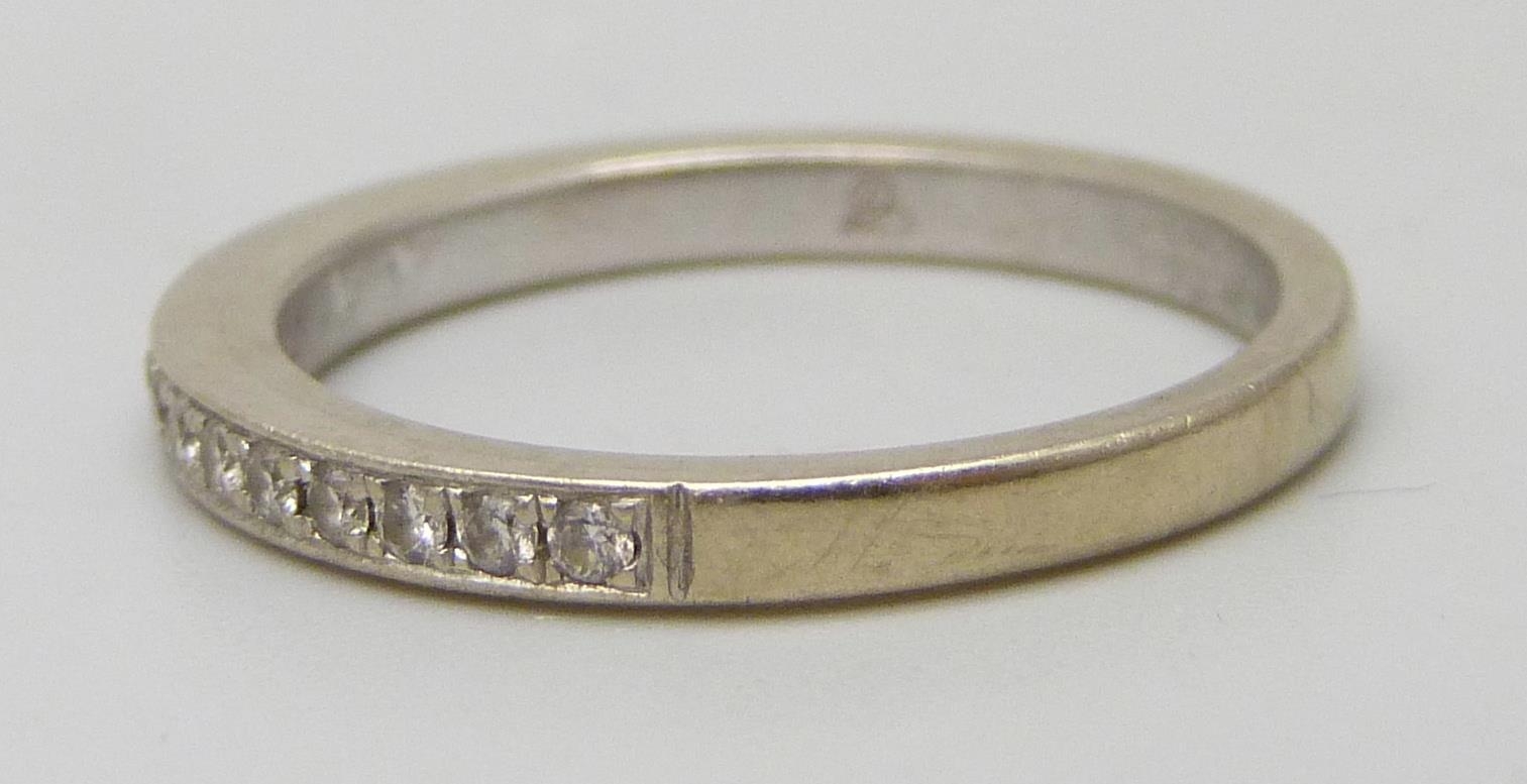 An 18ct white gold and diamond half eternity ring, 2.9g, M
