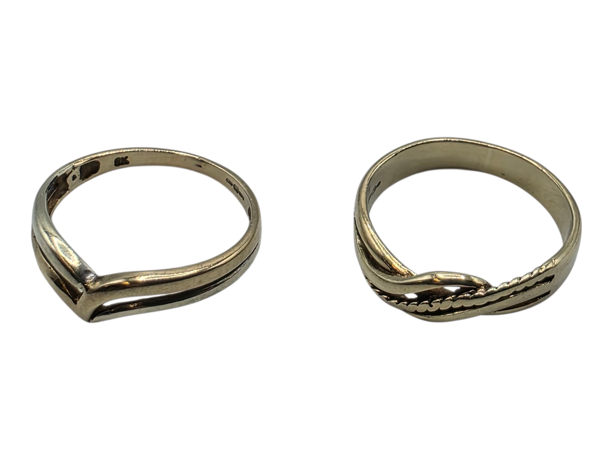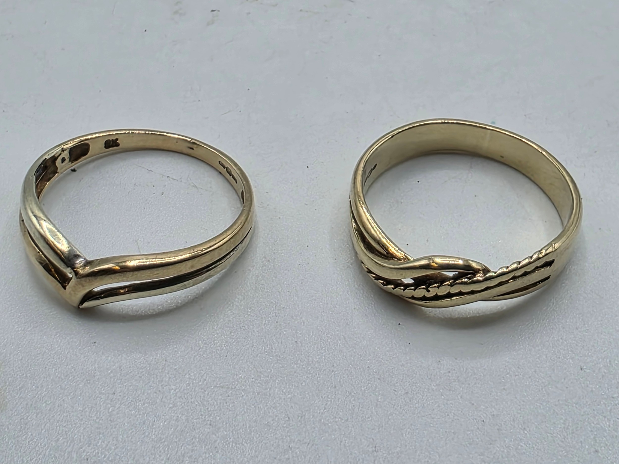 Two 9ct gold bands both size I. 3.2g