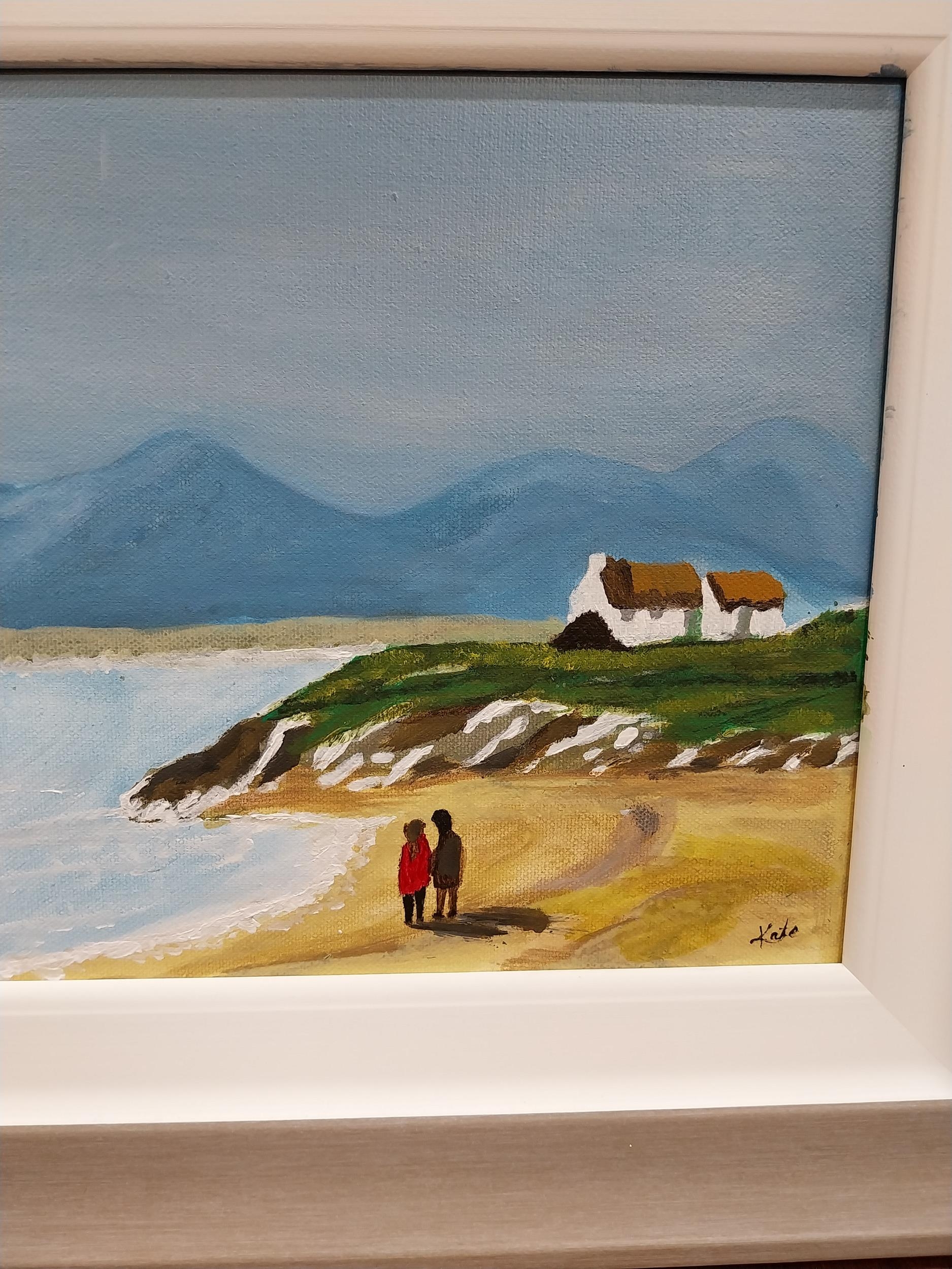 Framed acrylic on board - A Clare Beach signed Kate. {40 cm H x 45 cm W}.