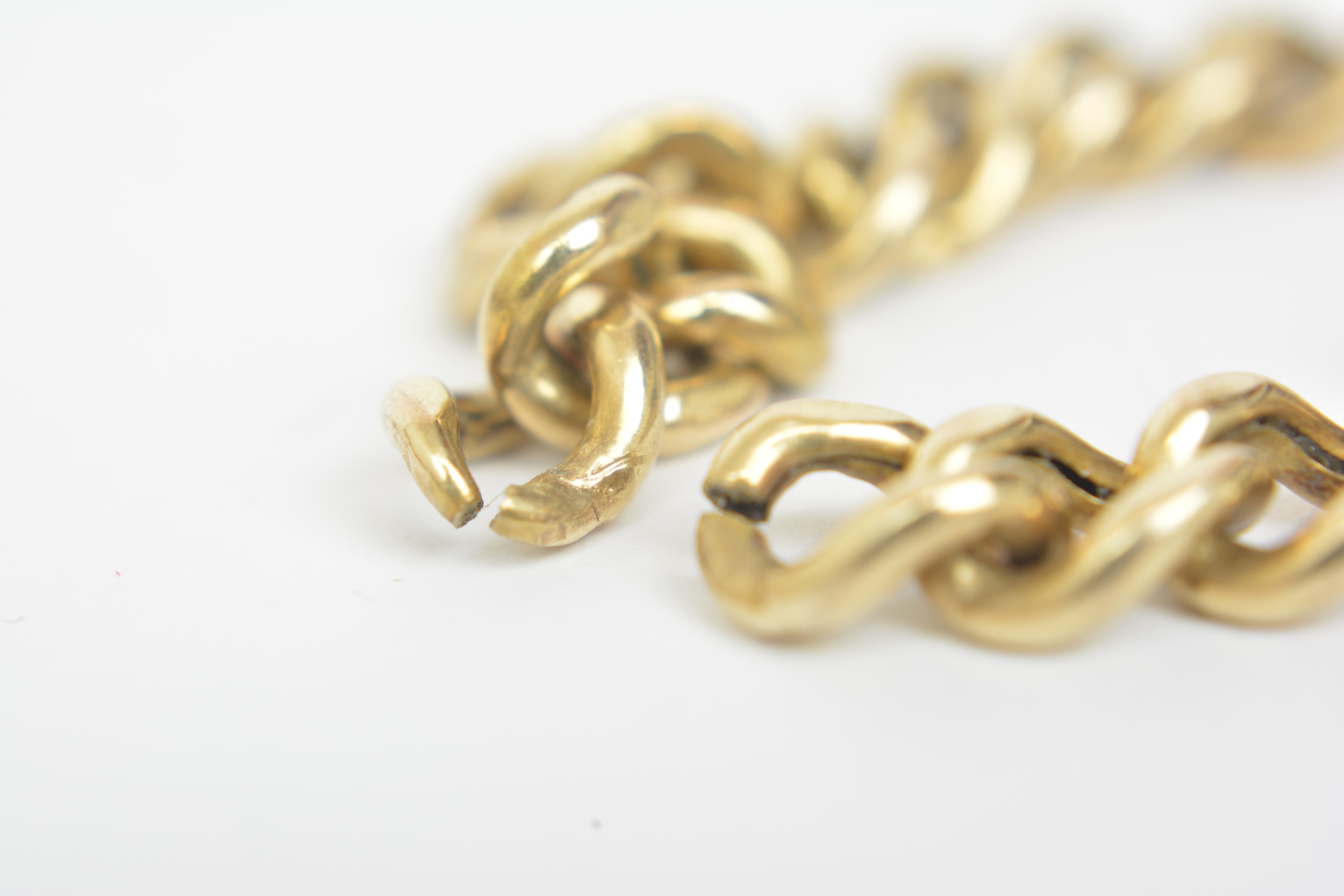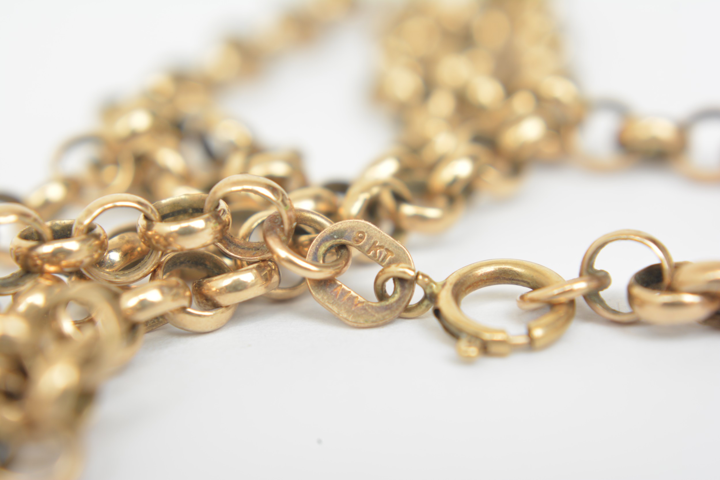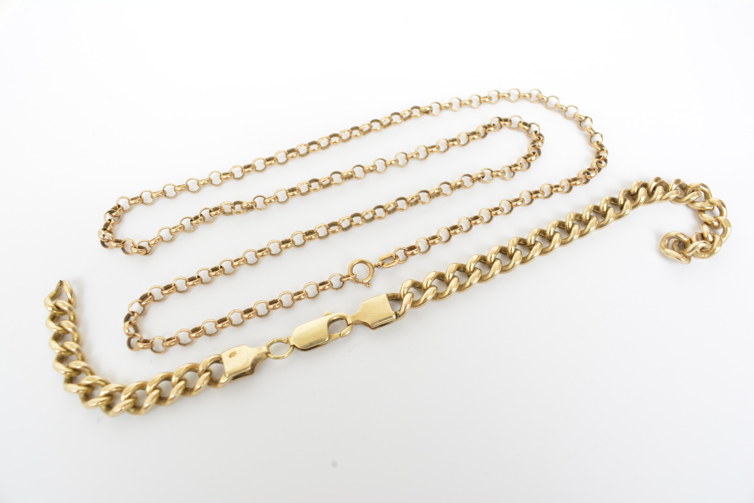 9ct gold belcher necklace approx length 19" together with 9ct yellow gold link bracelet in need of repair, gross combined weight approx 14g.
