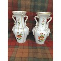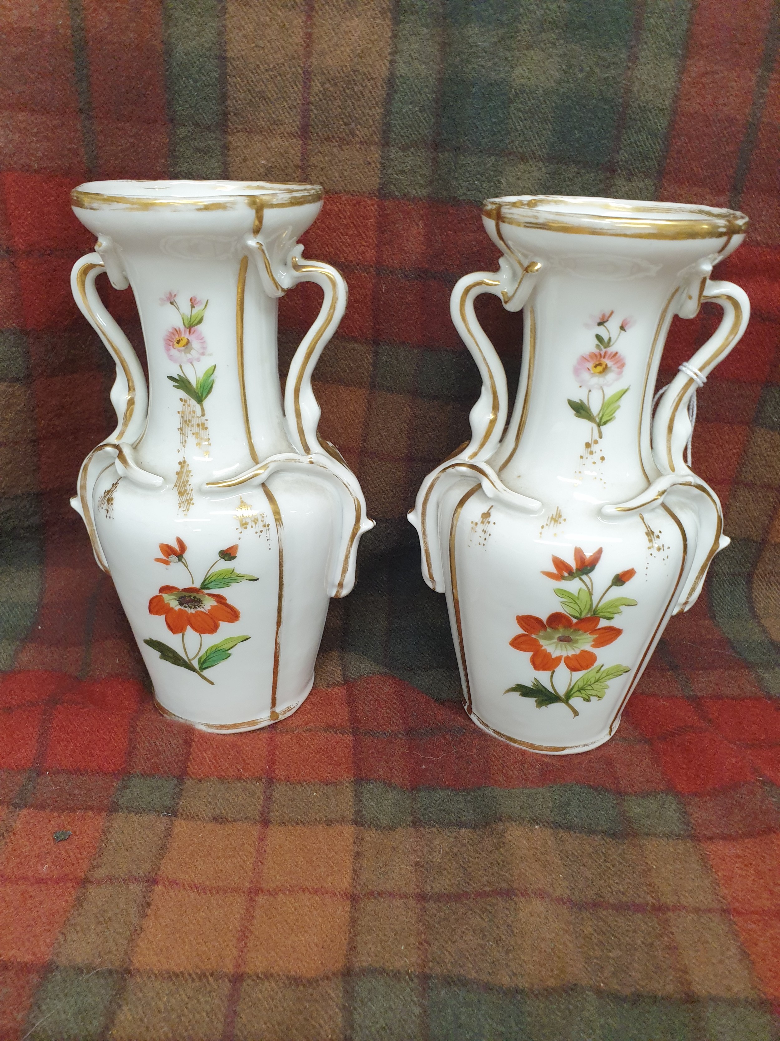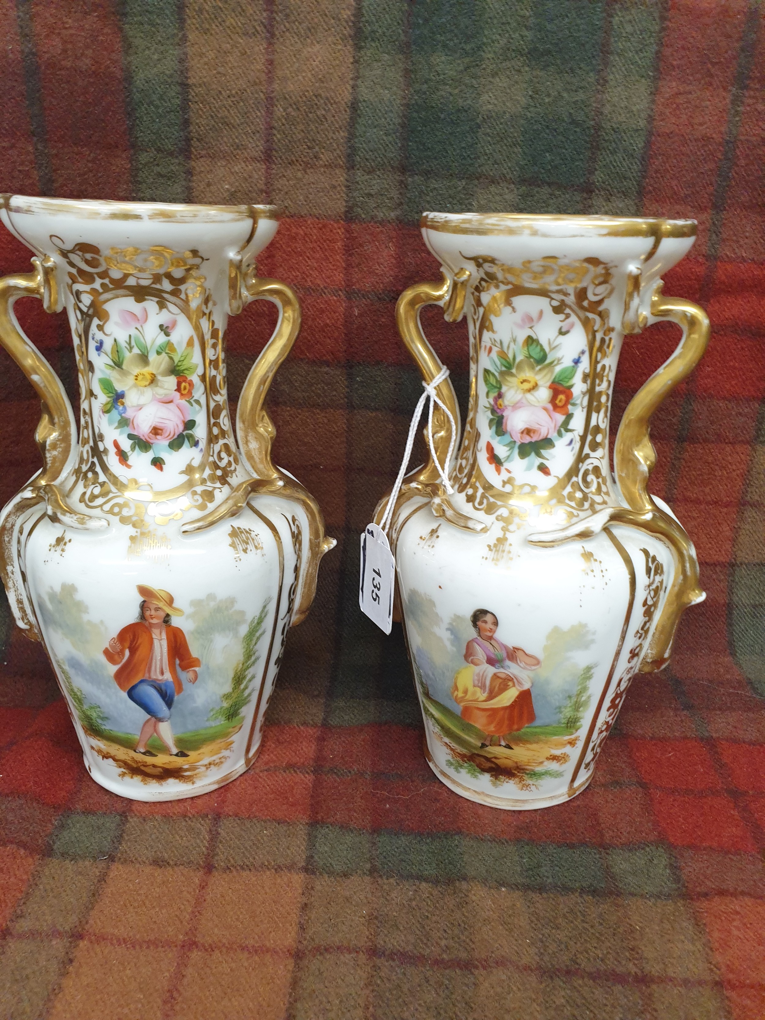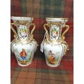 Pair OF Hand Painted Antique Vases Possibly German With Beautiful Hand Painted Panels Of Flowers And Figures With Gilding To Handles ect