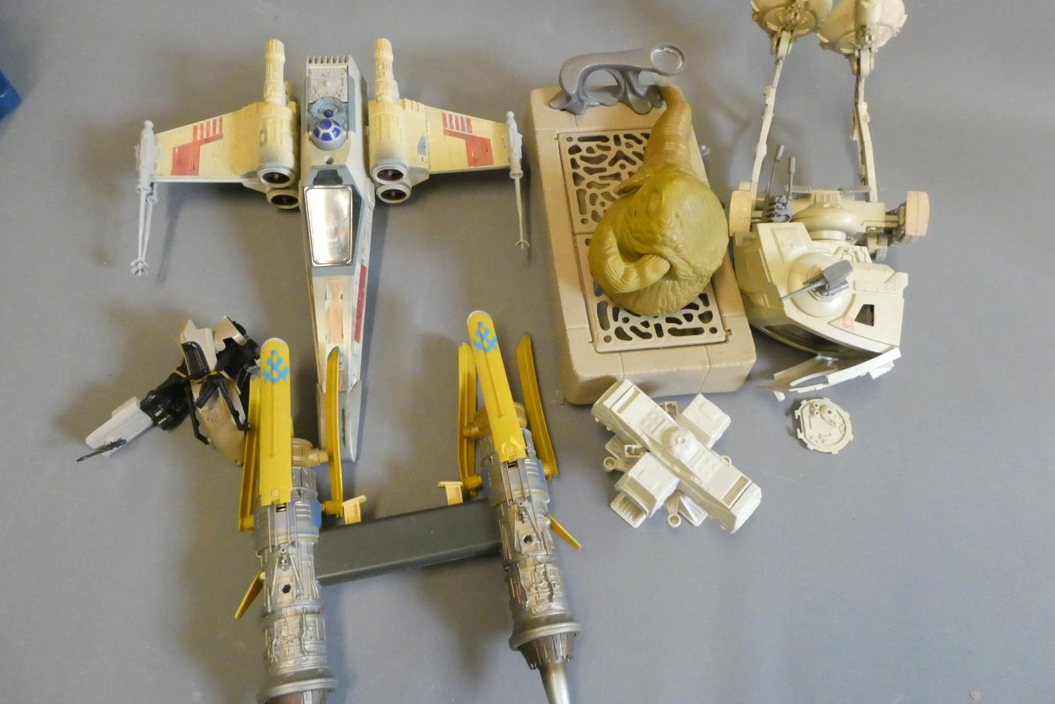 Playworn Kenner Star Wars vehicles and accessories including X Wing Fighter. Poor