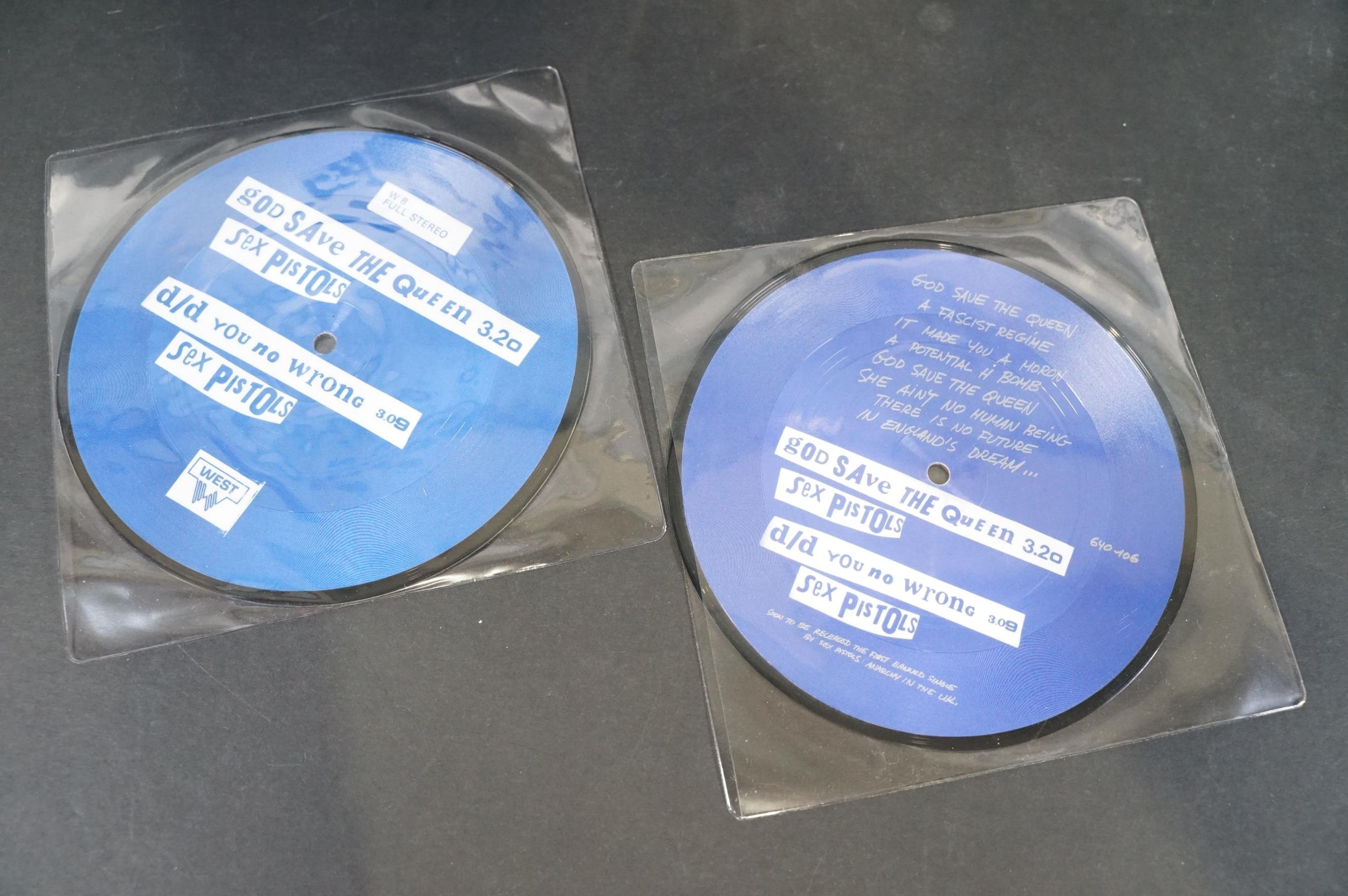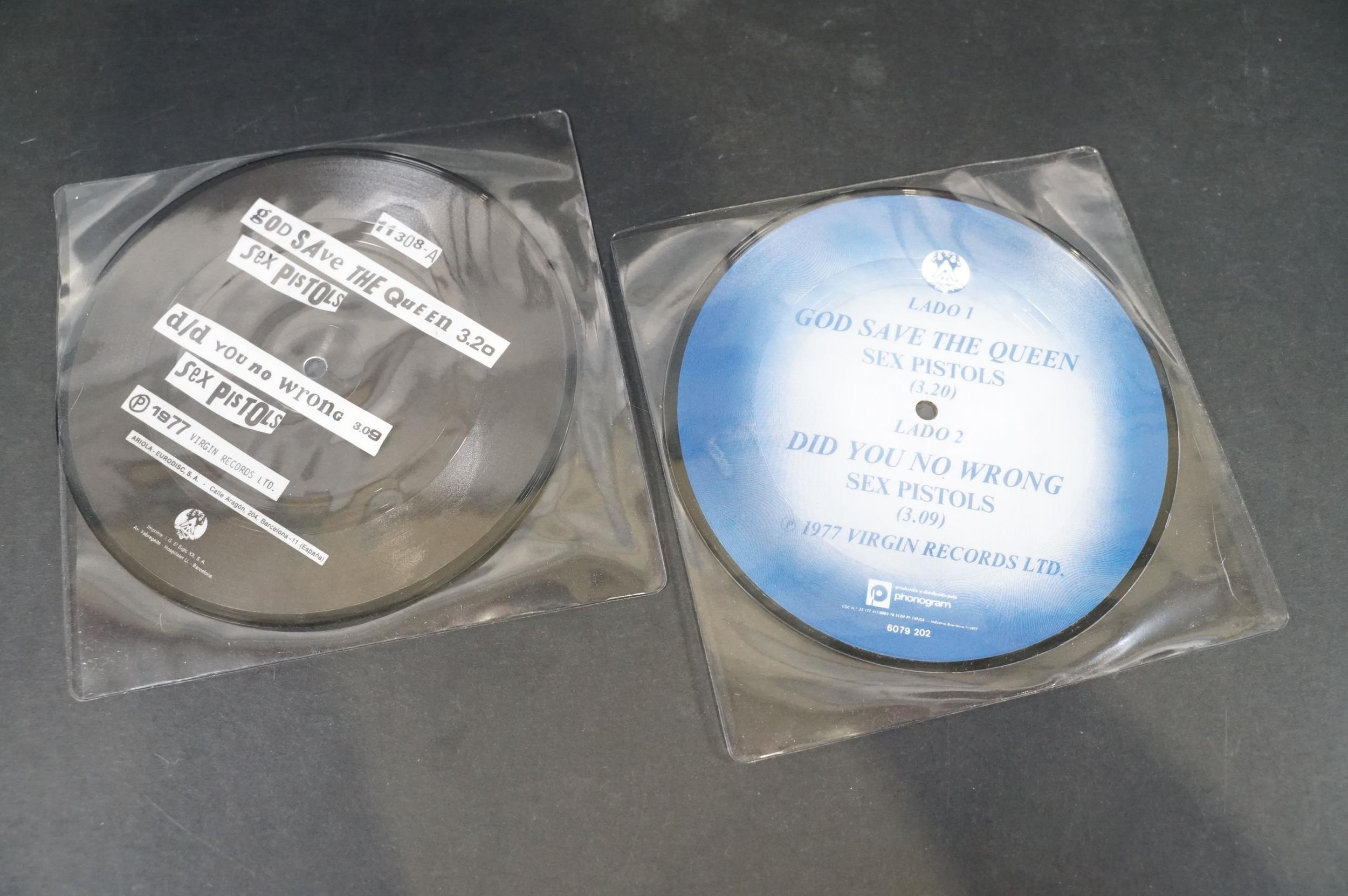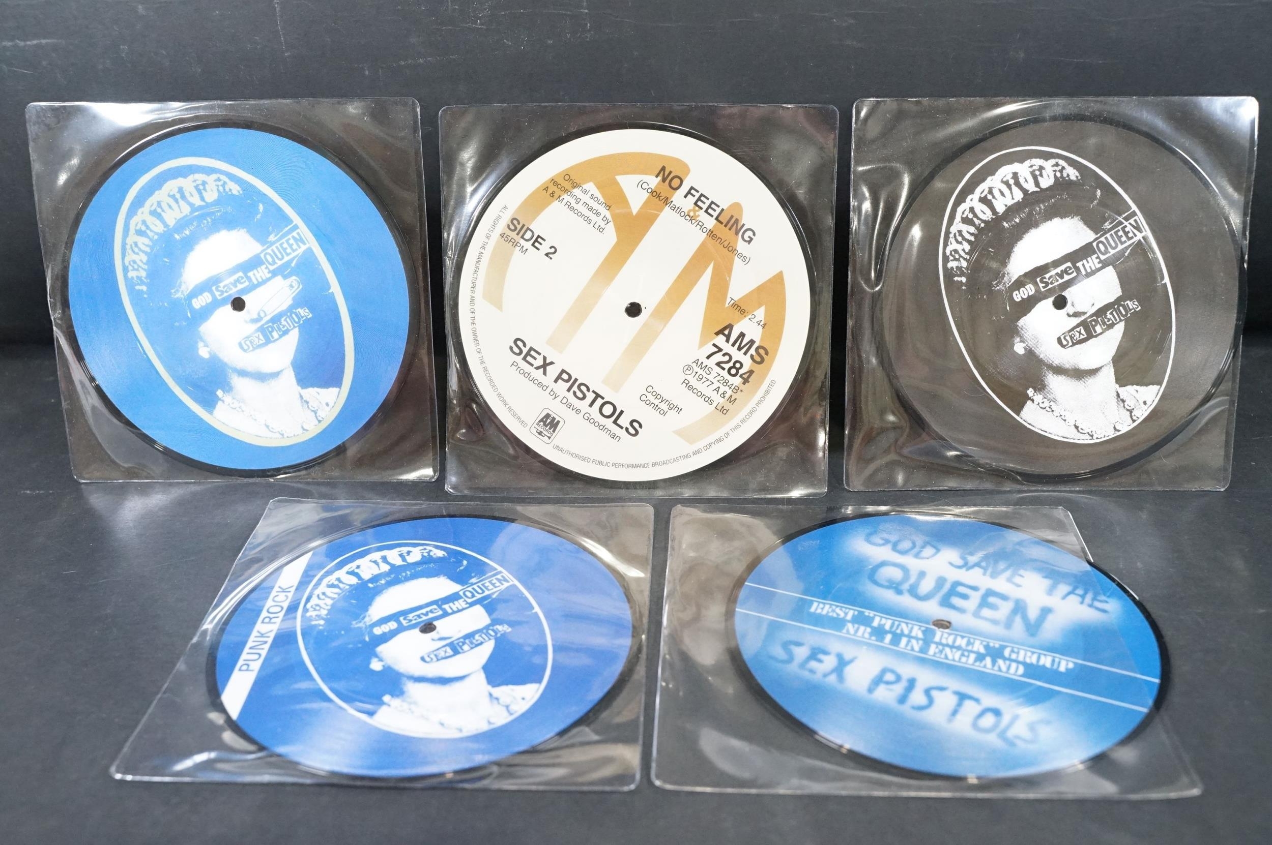 Vinyl - Punk - Sex Pistols, 5 different picture disc 7” re-issue singles of “God Save The Queen” including, UK 2011, Brazil 2016, Spain 2016, France 2016, Turkish 2017. Condition EX+
