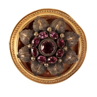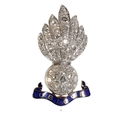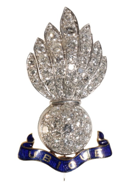 A DIAMOND AND ENAMEL ROYAL ARTILLERY ENGINEERS SWEET HEART BROOCH, the enamel plaque inscribed "UBIQUE", set in unmarked white and yellow precious metal