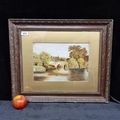 An original oil on board, titled 'Trout Inn, Godstown, Upper Thames'. Signed E. P. , dated 1921. Shows beautiful roman style bridge over a tranquil waterway. Mm: 52 cm x 62 cm.