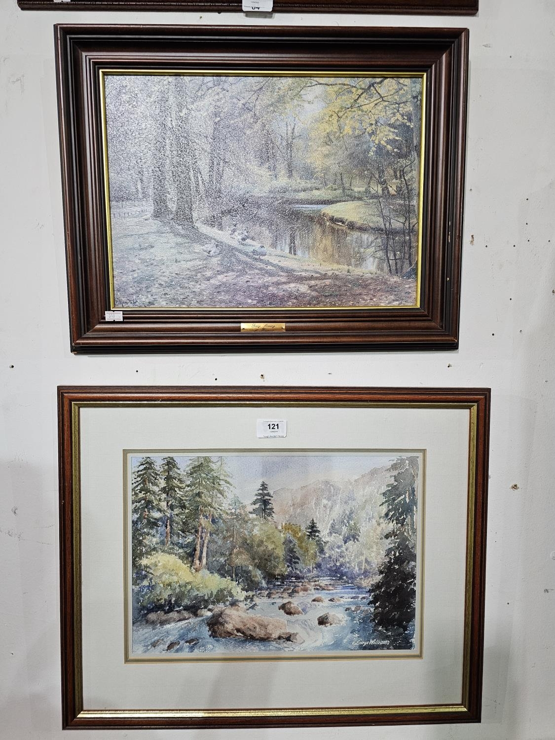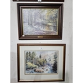 Two framed pictures of woodland and river images