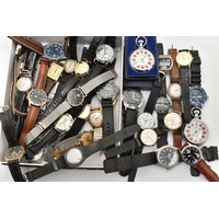 A BOX OF ASSORTED ITEMS, to include a silver harp brooch, ha...