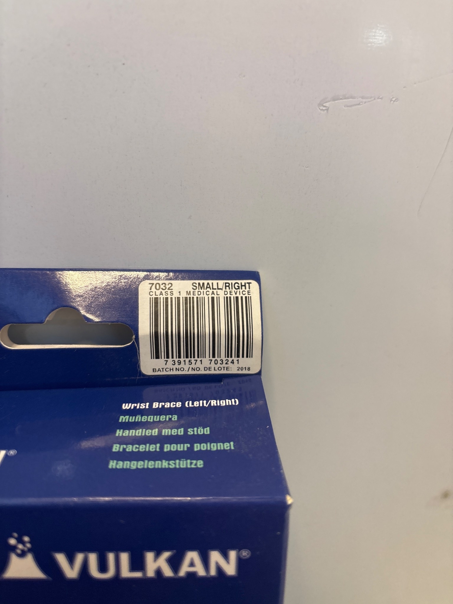 Vulkan wrist brace, right hand, size small, new in box.