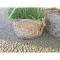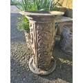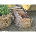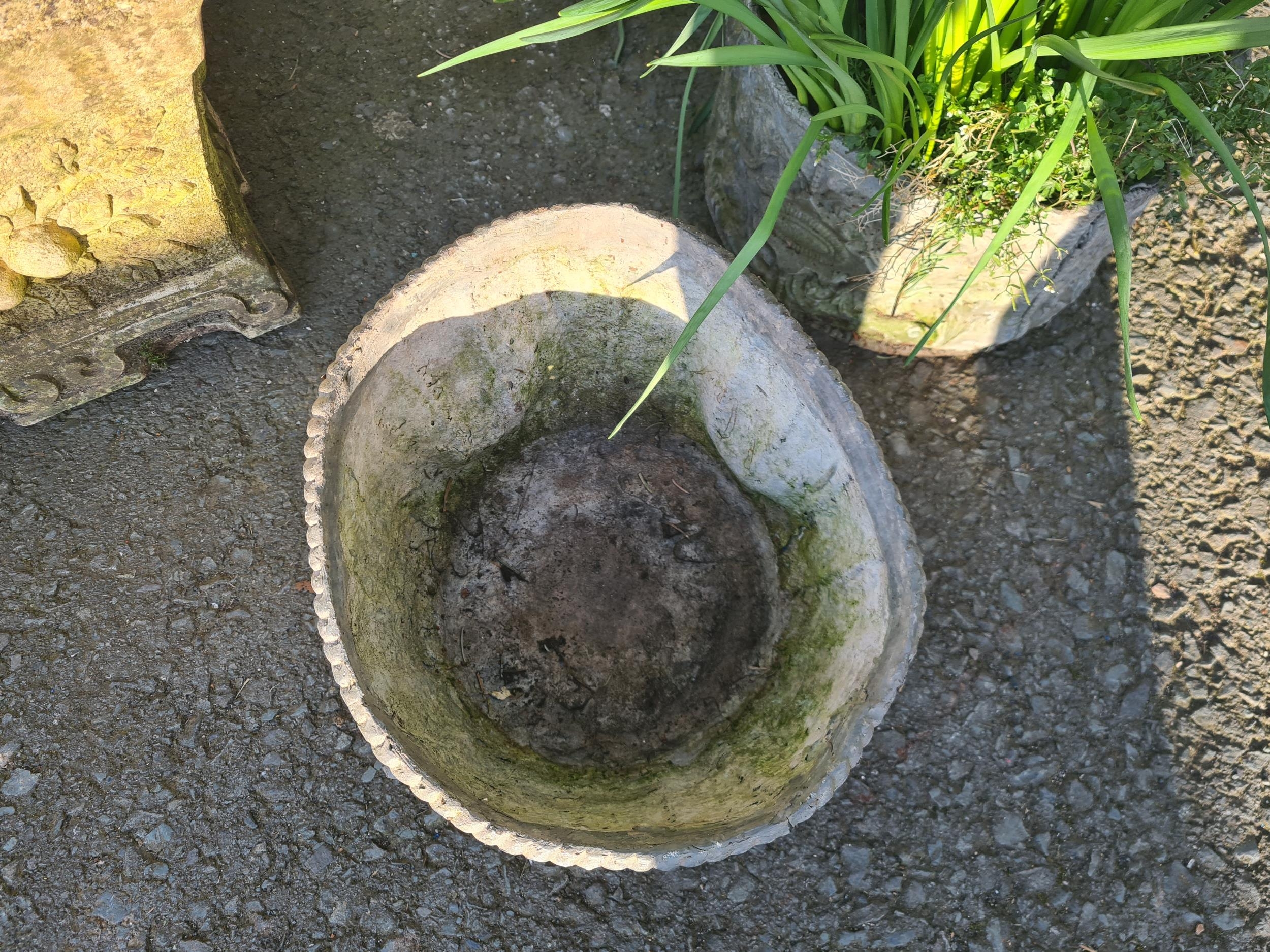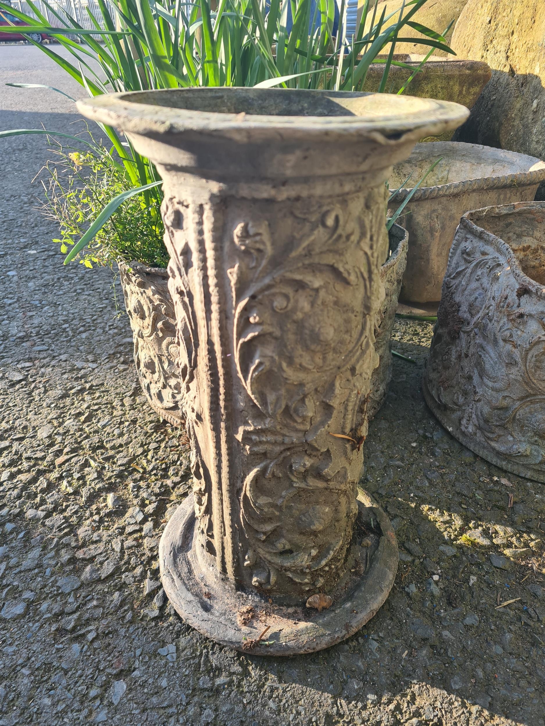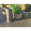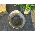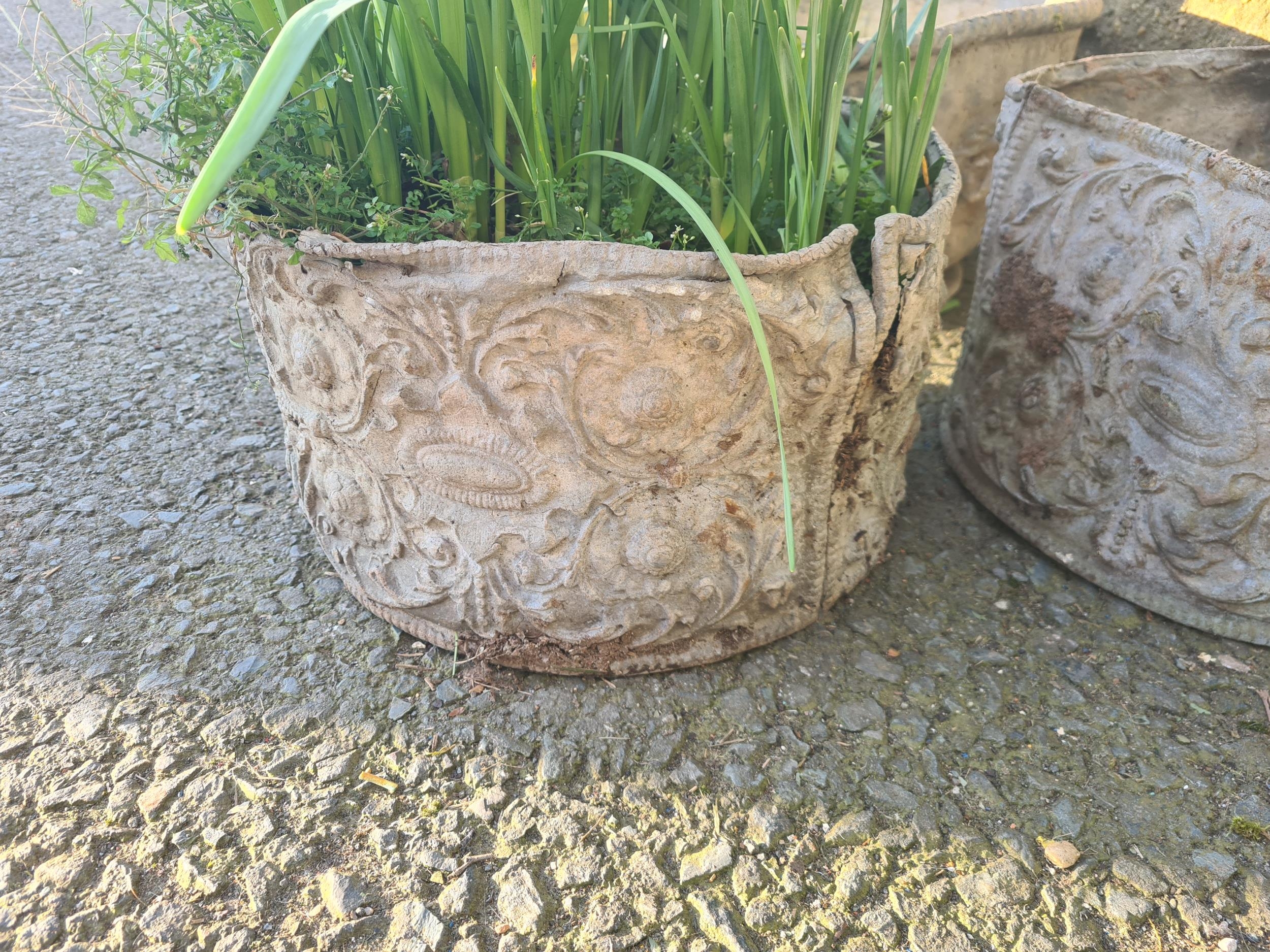 An iron Kettle Stand, 16in, and four small lead Planters, one A/F
