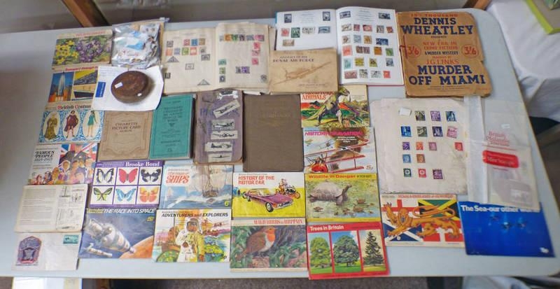 SELECTION OF STAMPS, PICTURE CARD ALBUMS ETC TO INCLUDE ALBUM OF WORLDWIDE STAMPS, JOHN PLAYER & SONS AIRCRAFT OF THE ROYAL AIR FORCE WILLS WILD FLOWERS, MY BEST SCOTCH STORIES BY SIR HARRY LAUDER - 1929 ETC
