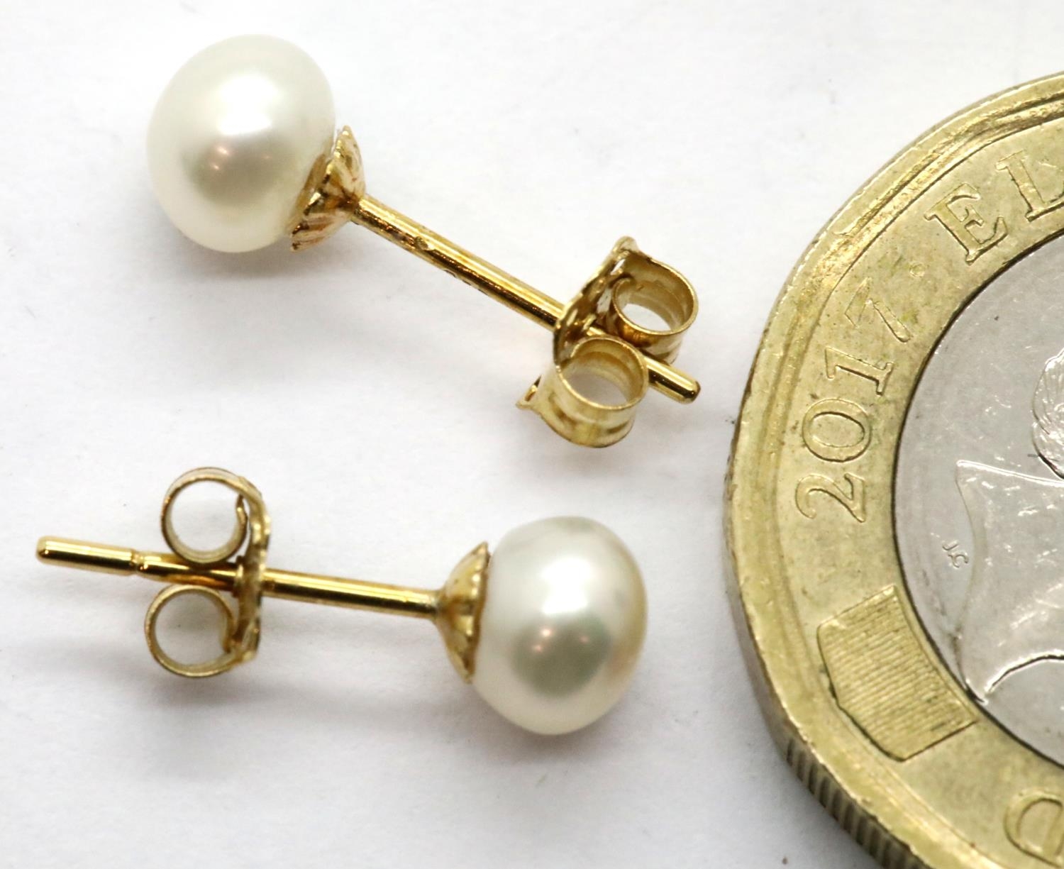 Ladies American 14ct new old stock pearl stud earrings. P&P Group 1 (£14+VAT for the first lot and £1+VAT for subsequent lots)