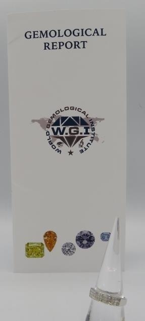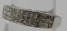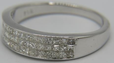 Certificated 18ct white gold invisible set nine stone princess cut diamond ring, size N. Diamonds approx 0.75ct. Certificate No: WGI9624126502.