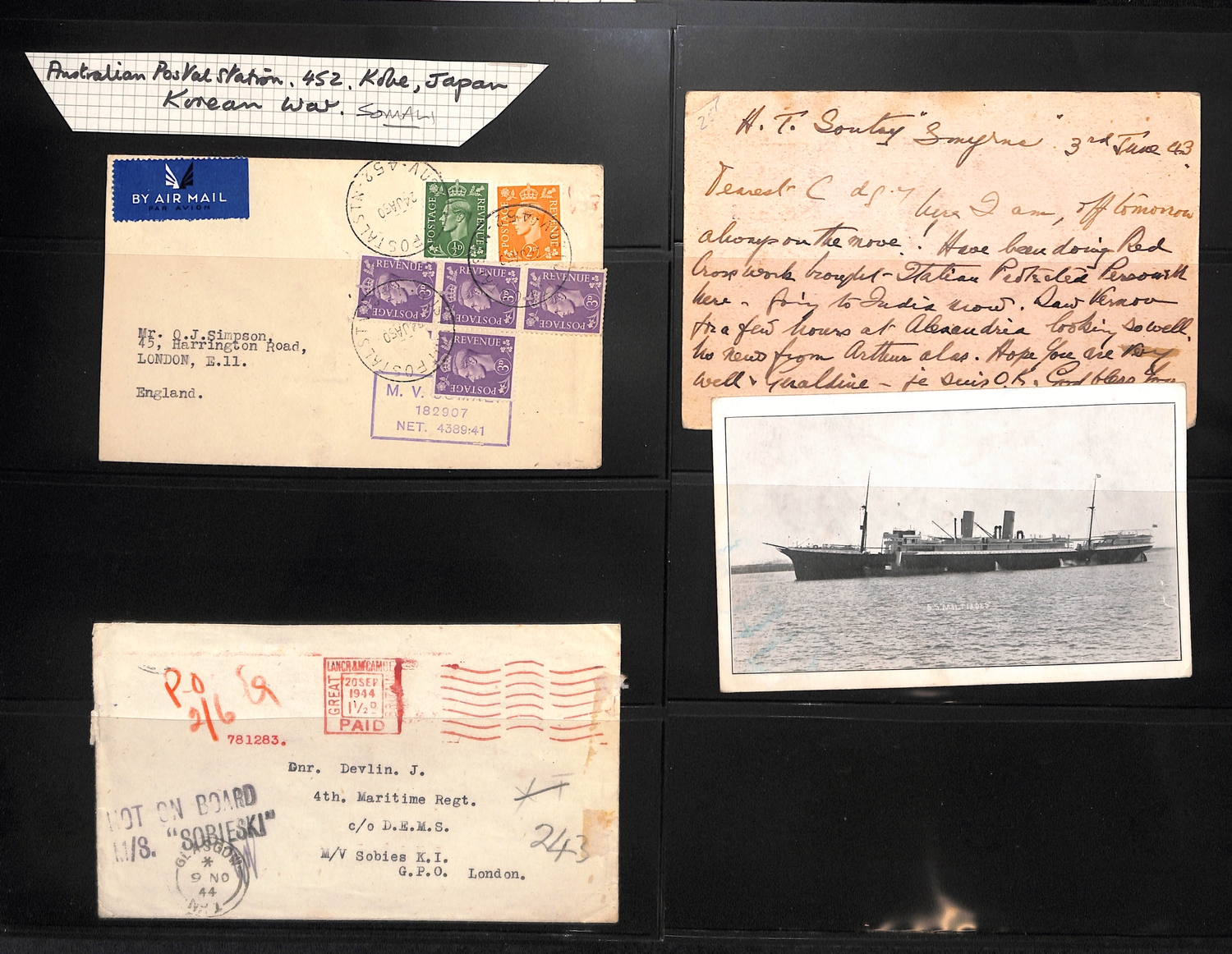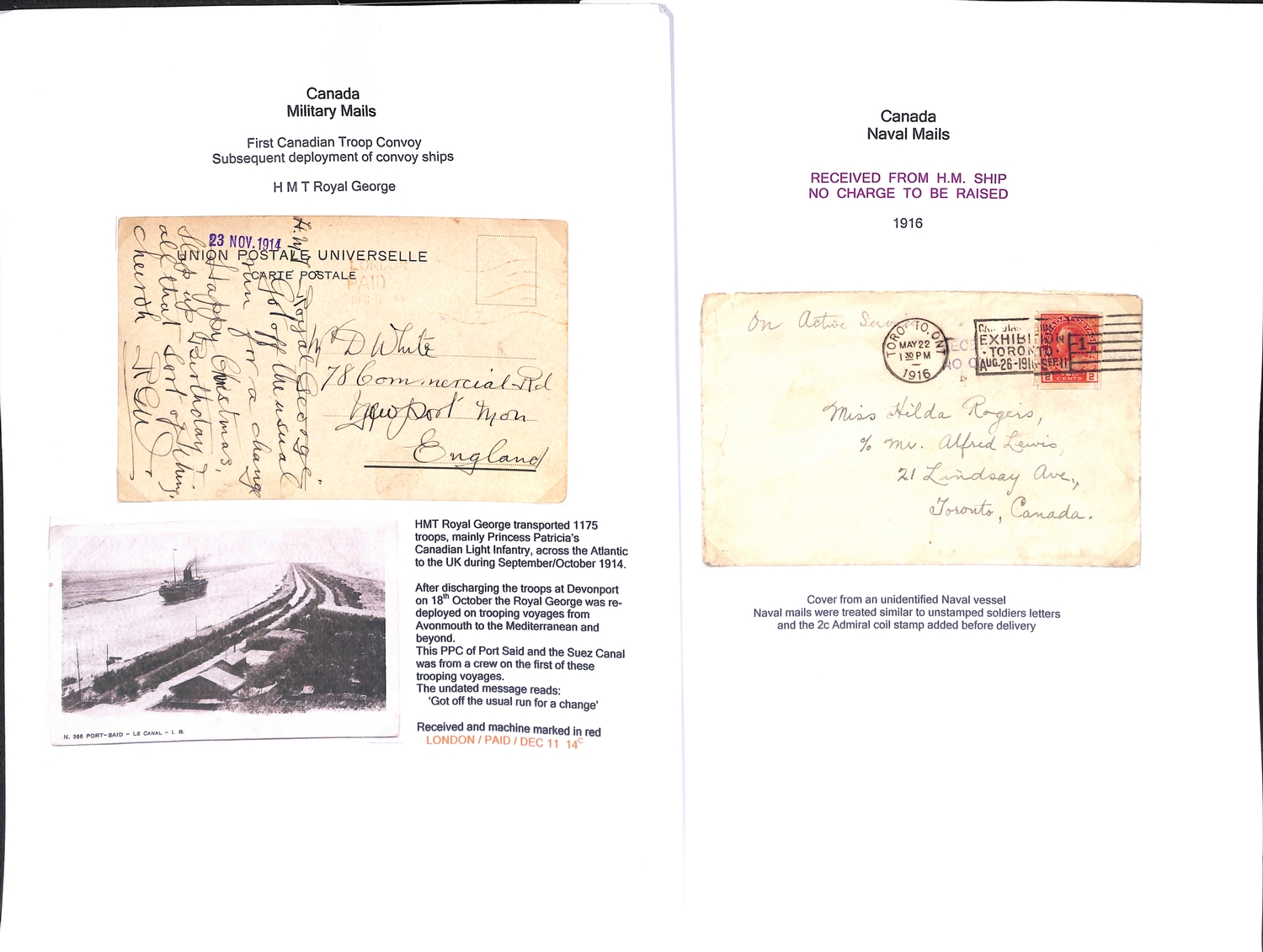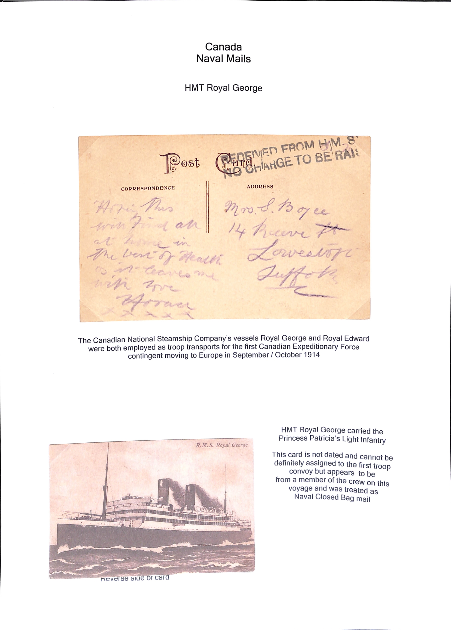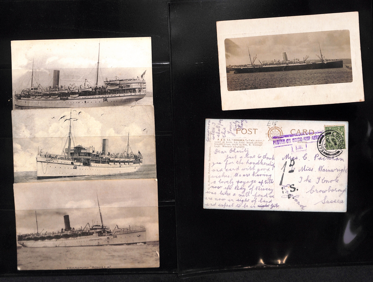 Troopship Mail. c.1905-45 Postcards and covers posted on British troopships, mainly WW1 but some earlier and later, also many picture postcards of the ships, and a few covers from German troopships. (c.240).