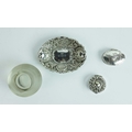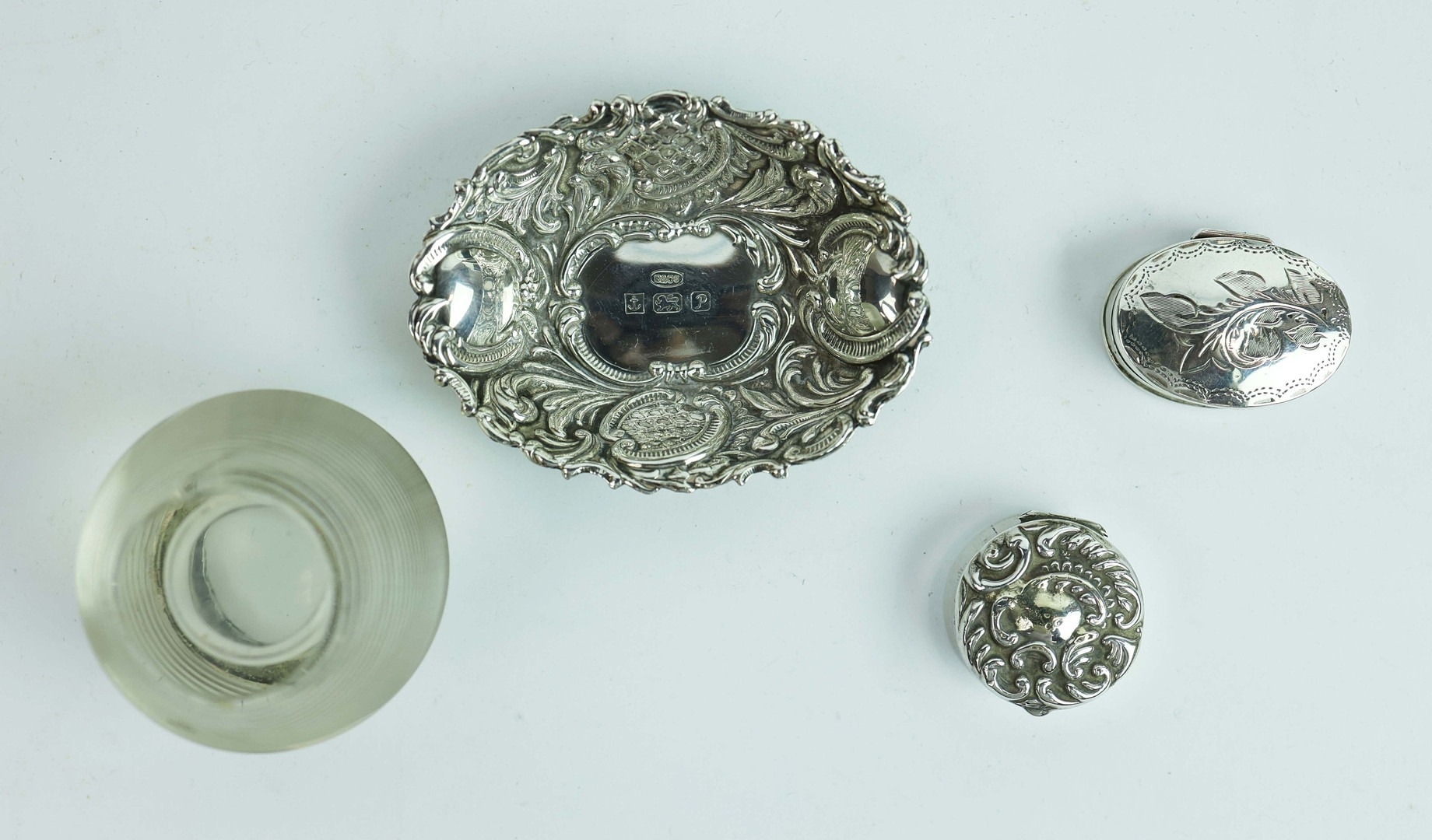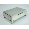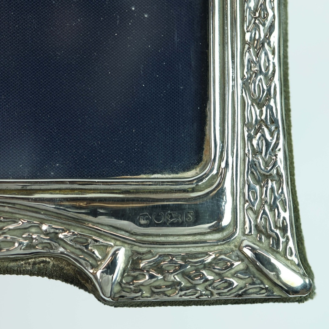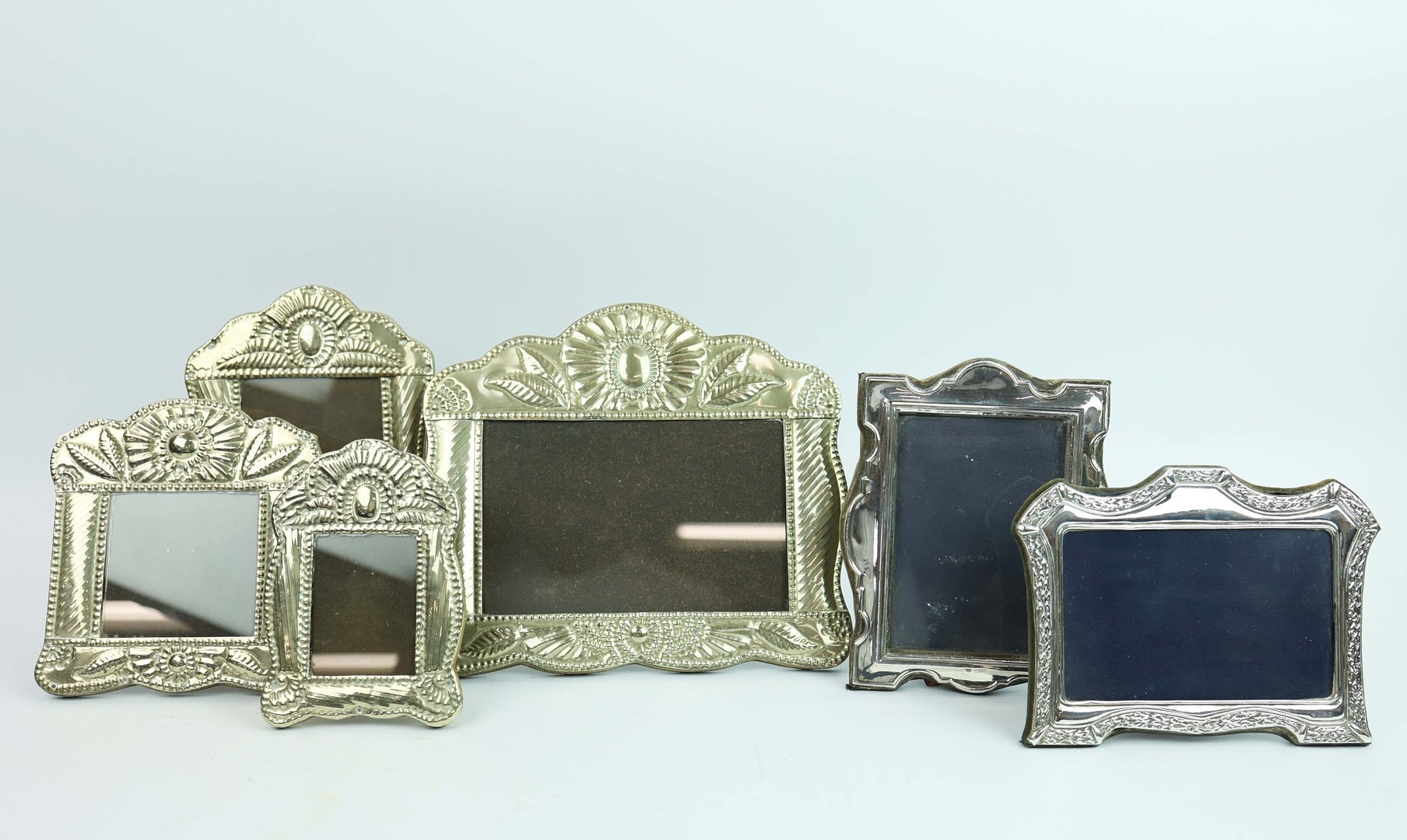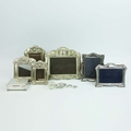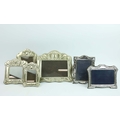 A COLLECTION OF SILVER AND PLATE. (QTY). comprising six picture frames, four matching the other two hallmarked along with a silverplated cigarette box a match striker and three other small items. 25cm W x 22cm H.