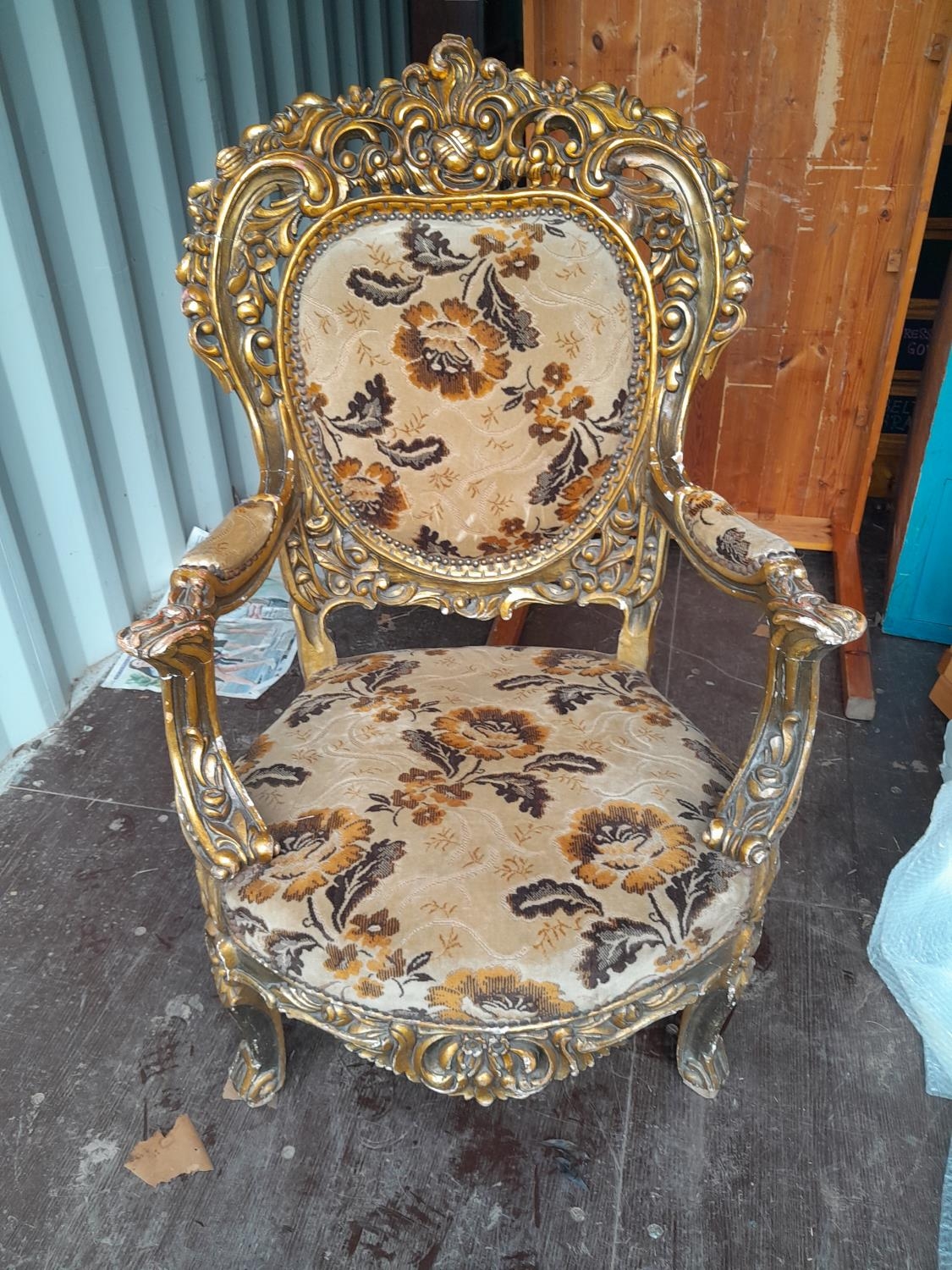 Impressive gilt gesso 20th century French salon chair