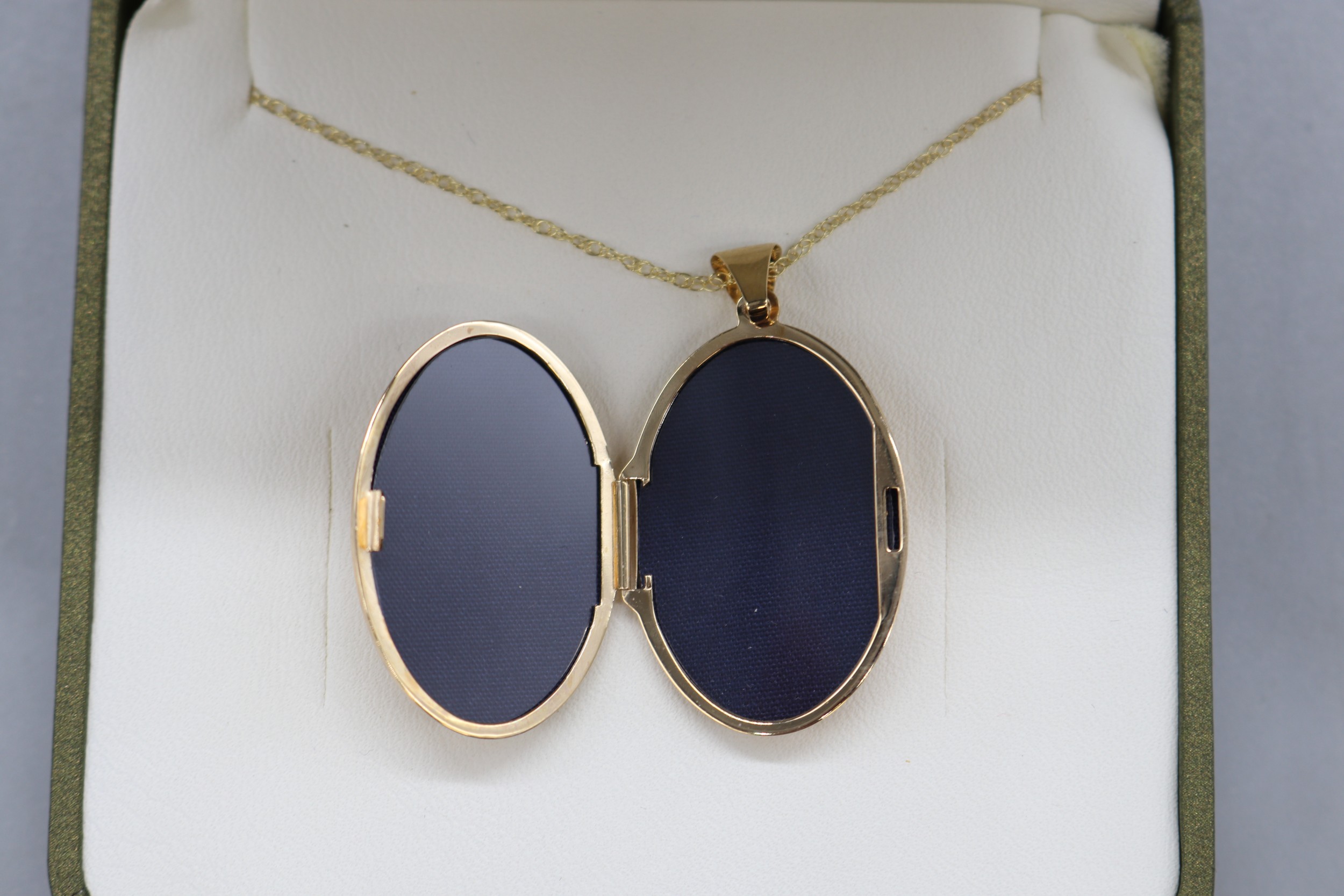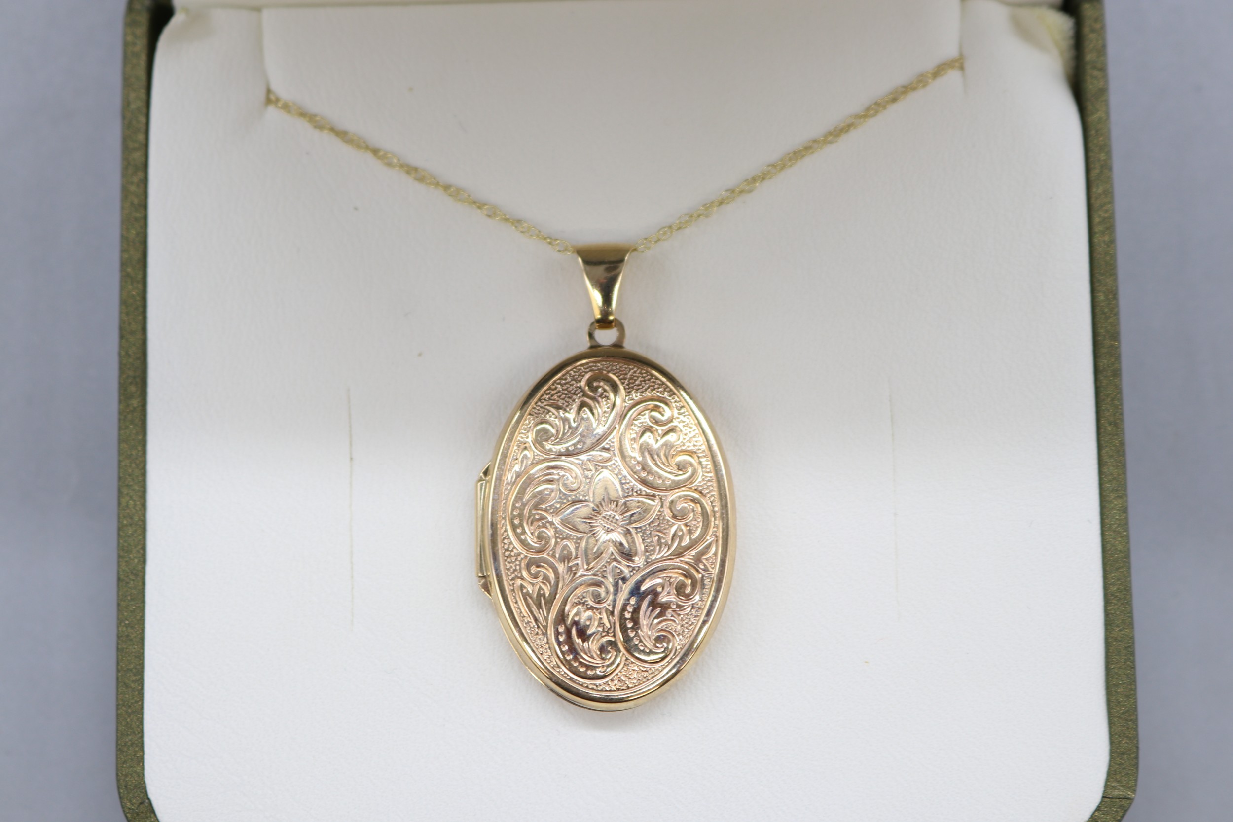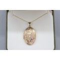 9ct yellow gold locket with scrollwork floral front on a fine double belcher rope chain, length 18", weight 3.79g