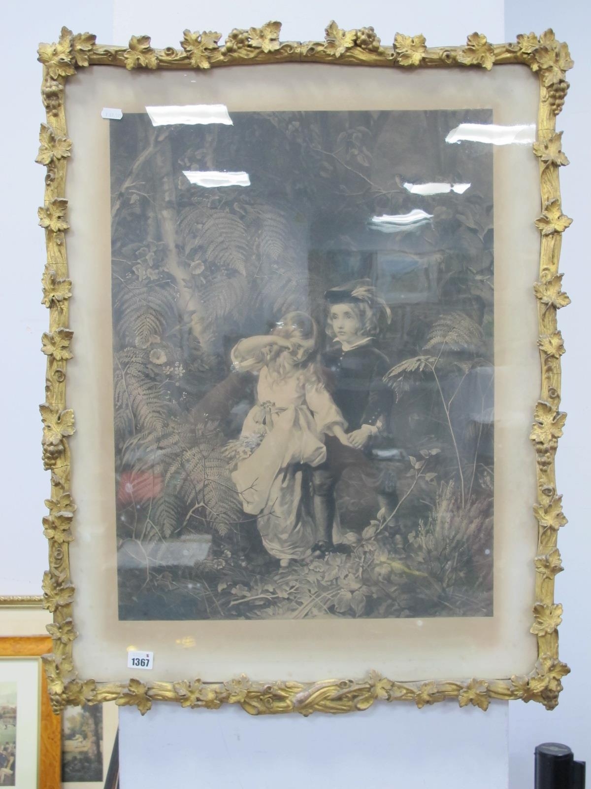 After J. Sant, 'The Children in The Wood', engraving by J.J. Chant, in applied leaf gilt frame, 62 x 46.5cm