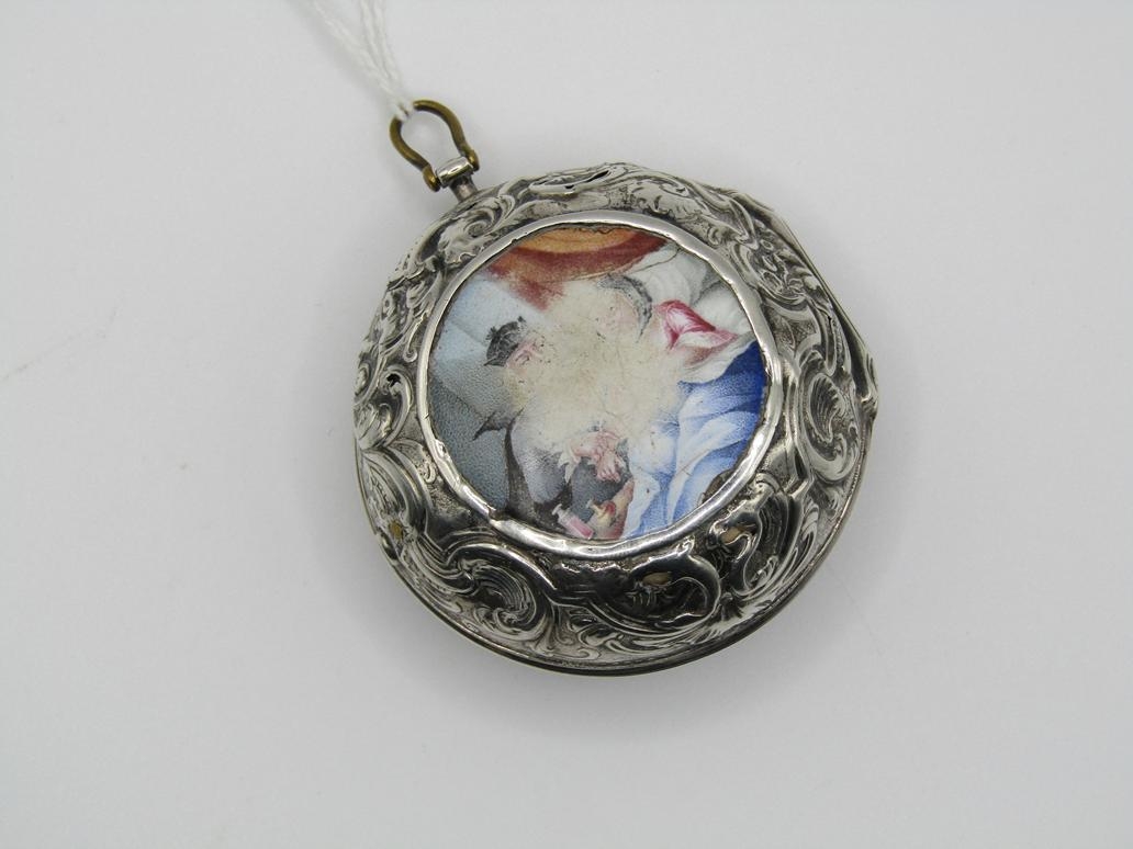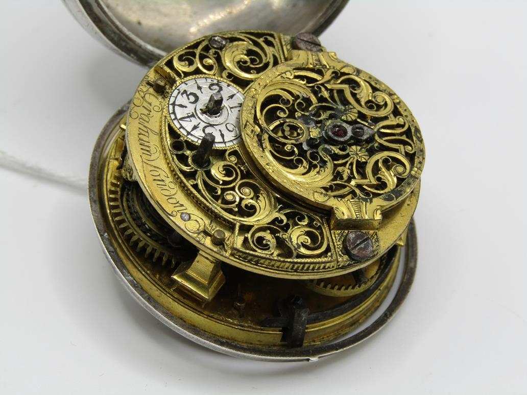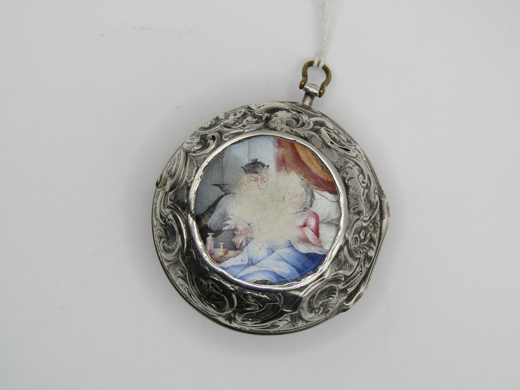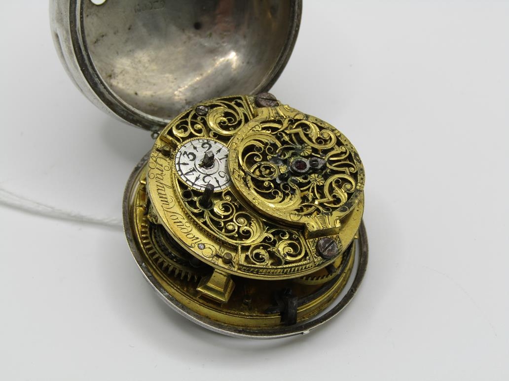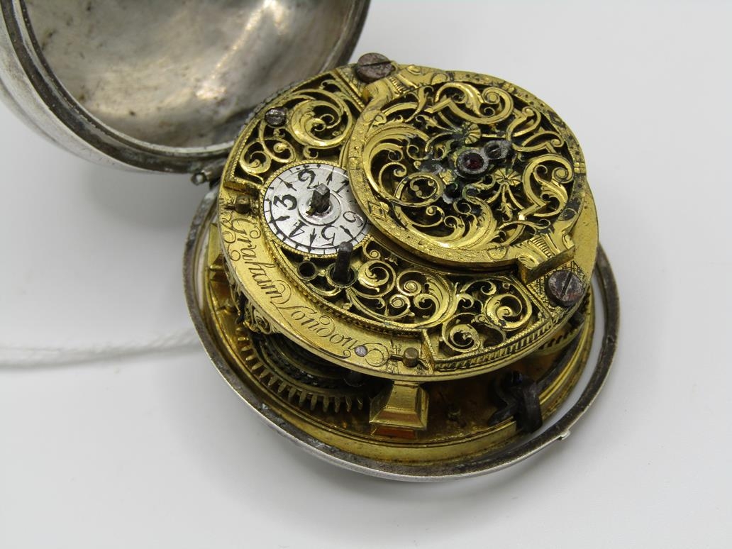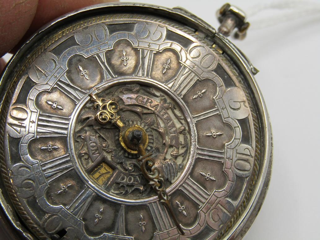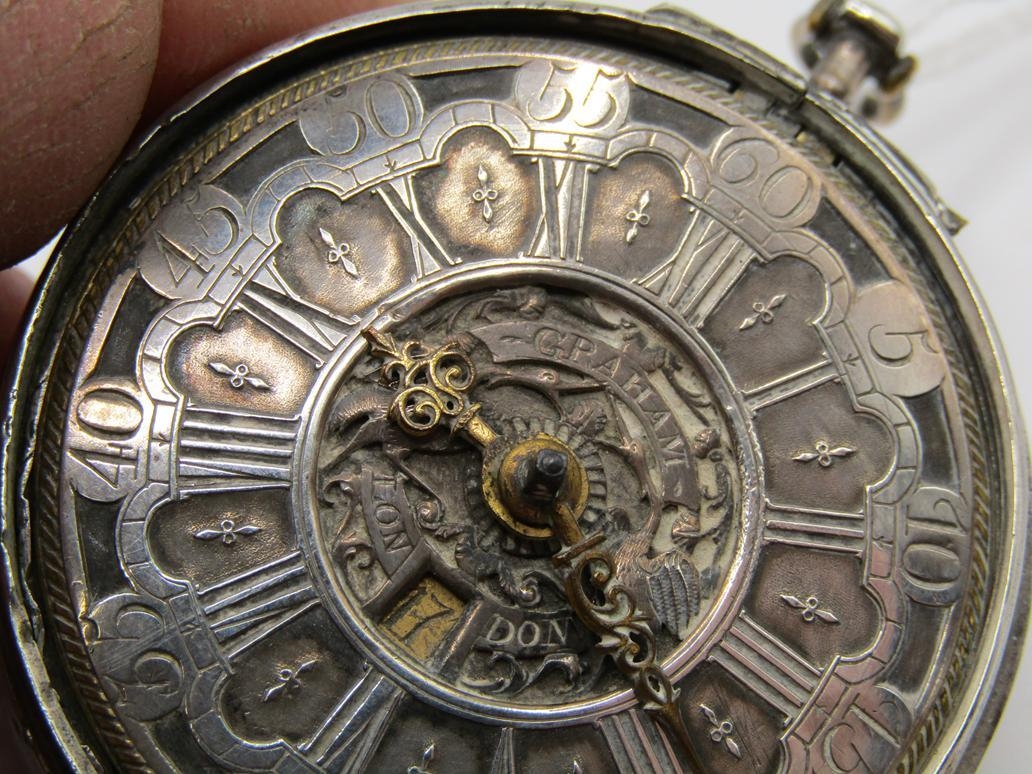 LATE 18C GRAHAM OF LONDON HOUR STRIKING POCKET WATCH WITH ENAMELLED PAIR CASE WITH WATCH MAKERS TICKET LINER