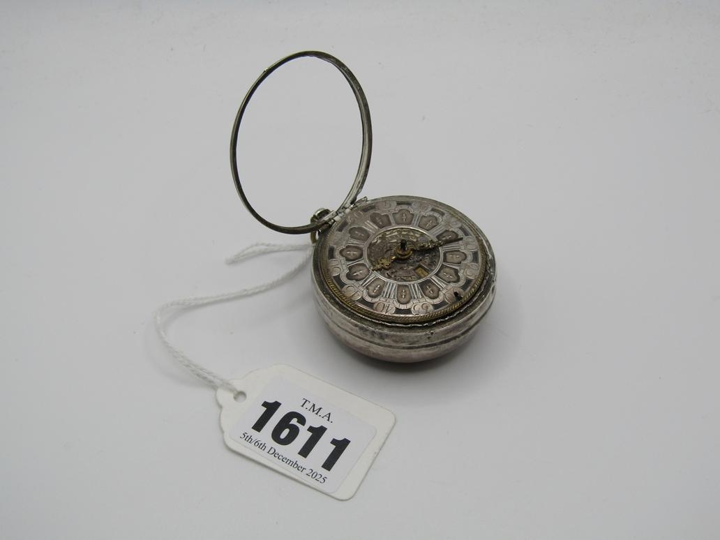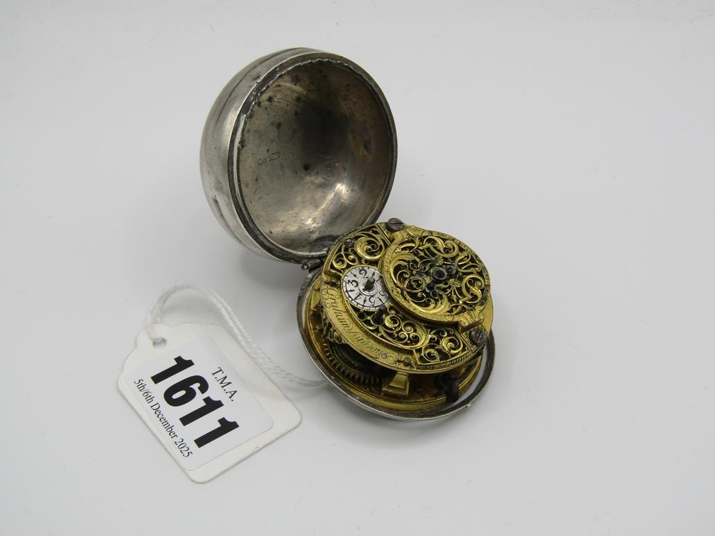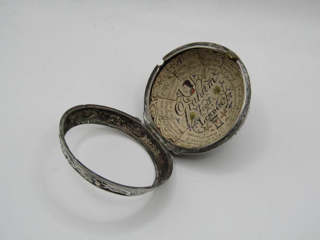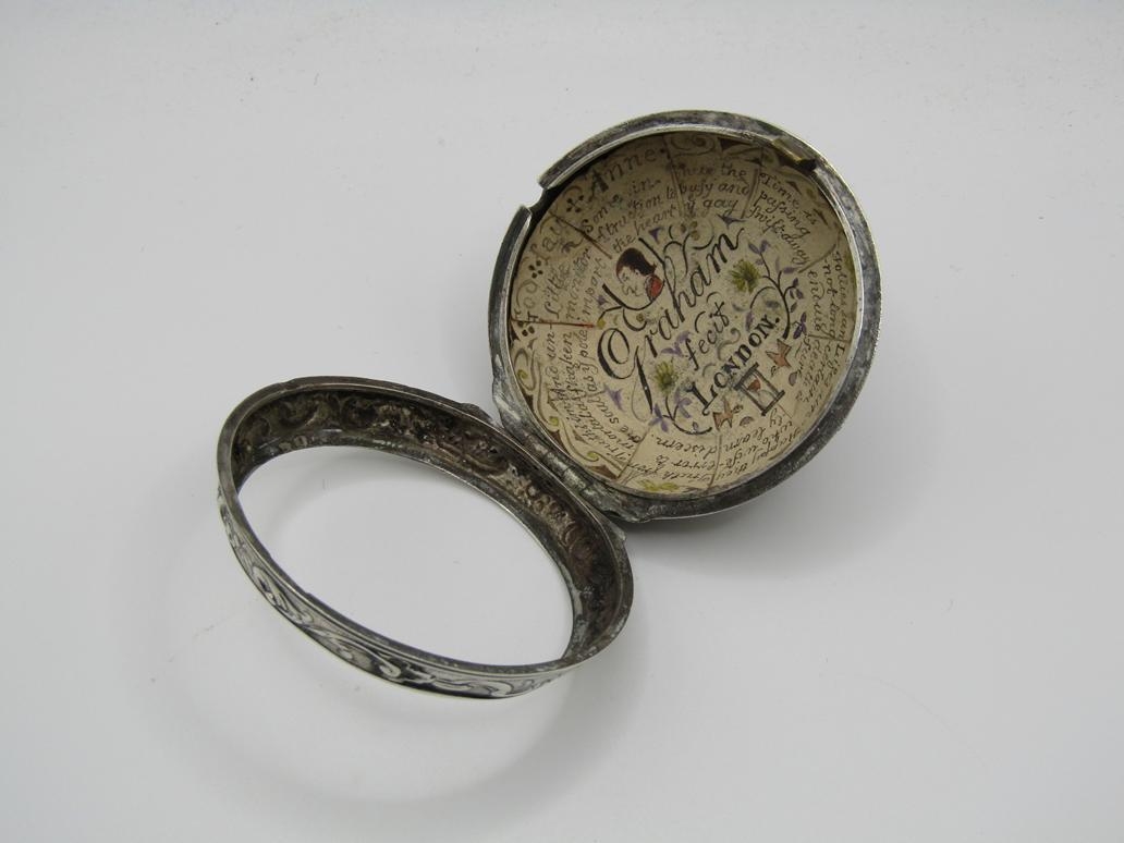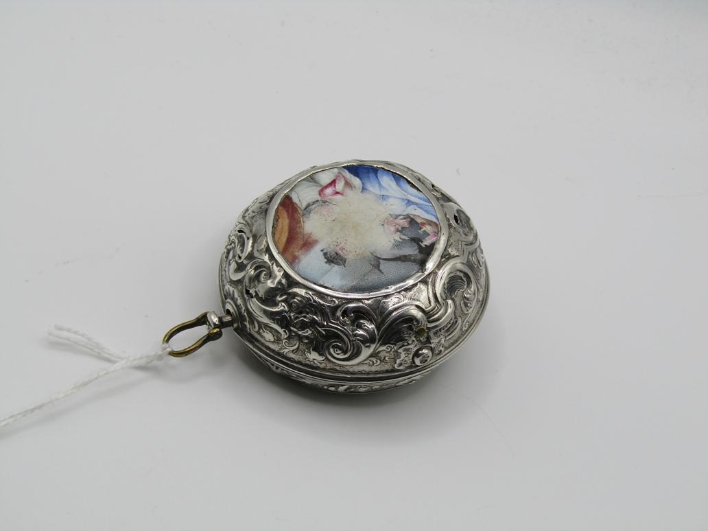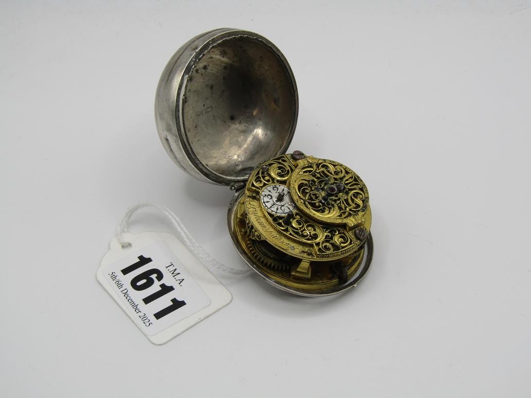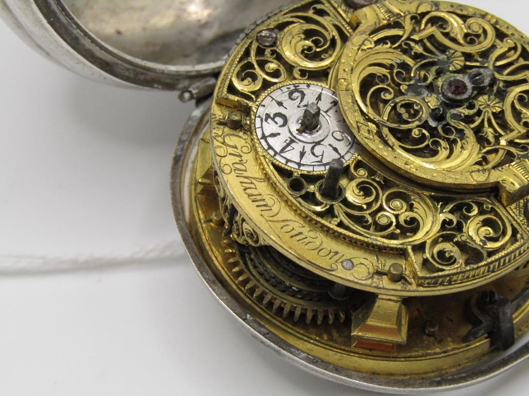 LATE 18C GRAHAM OF LONDON HOUR STRIKING POCKET WATCH WITH ENAMELLED PAIR CASE WITH WATCH MAKERS TICKET LINER
