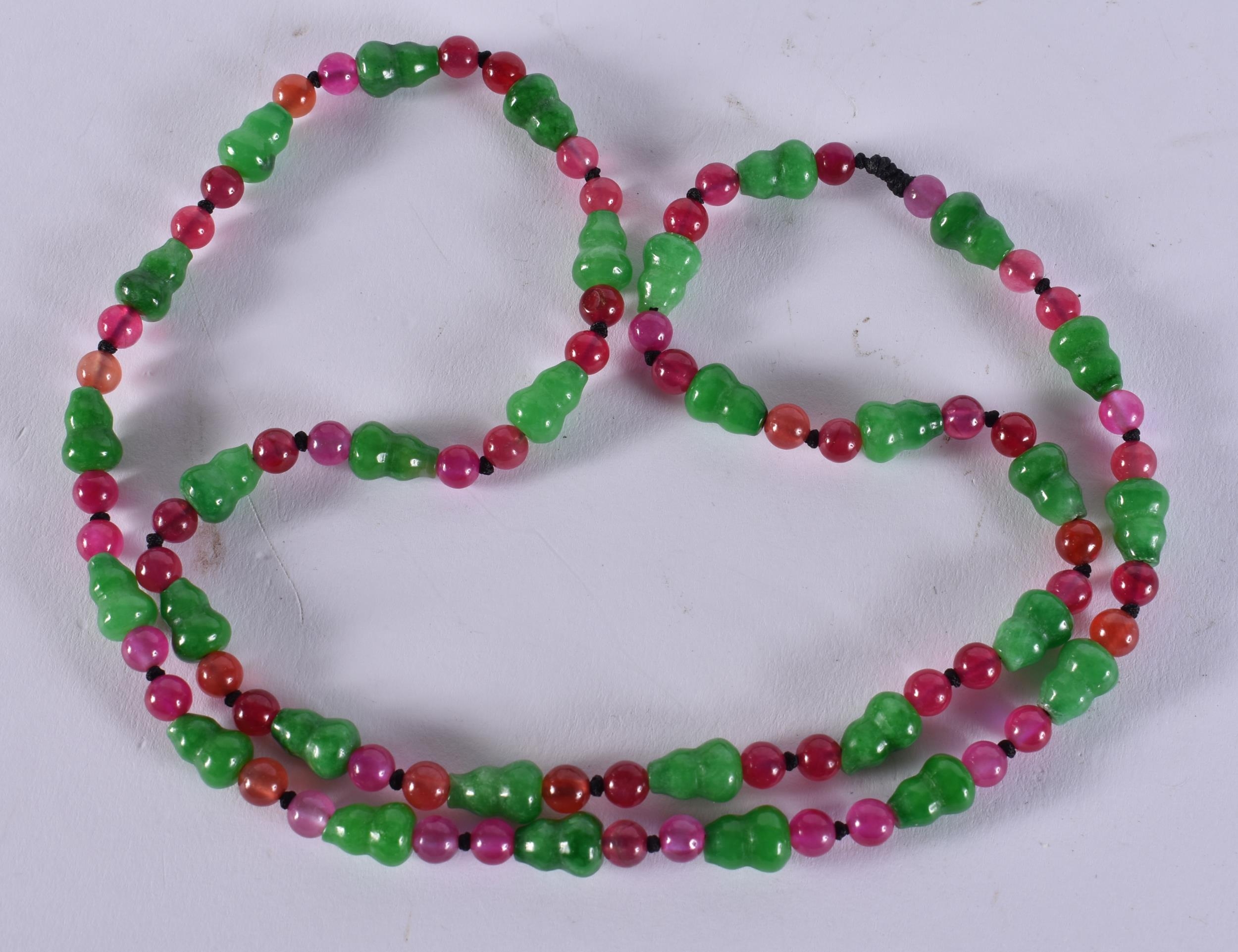 A CHINESE JADE AND TOURMALINE NECKLACE. 49 grams. 70 cm long.