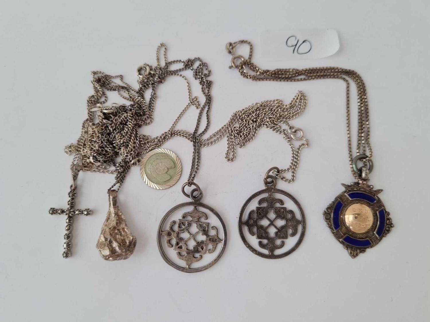 Six silver pendants on silver chains 39g inc