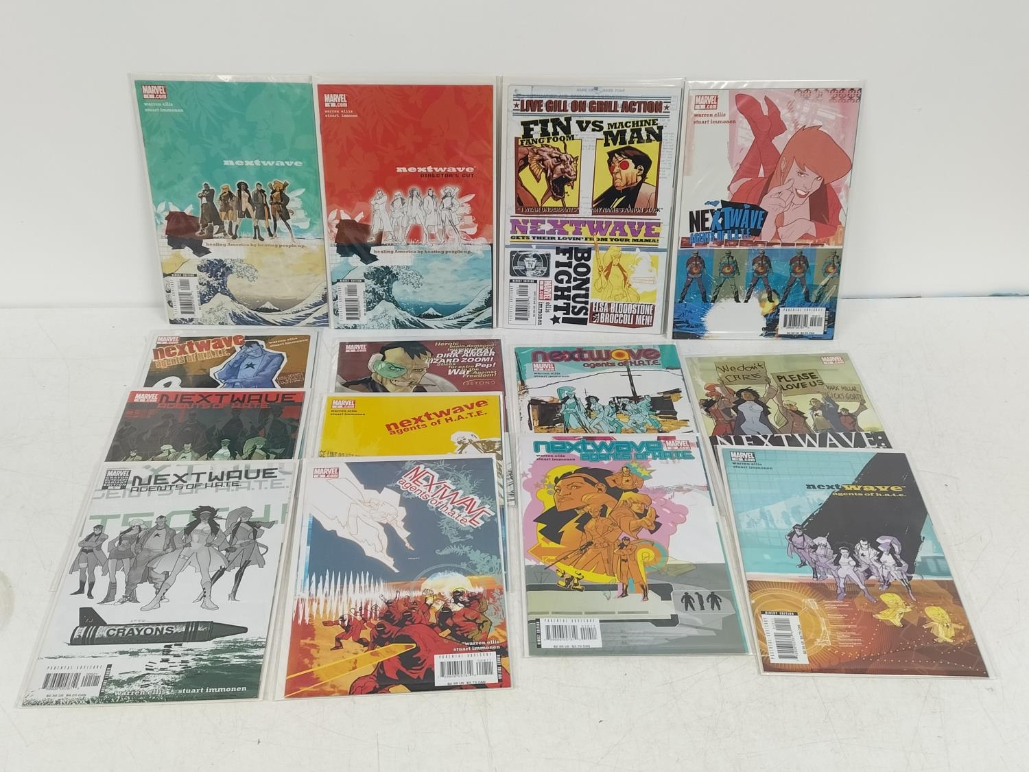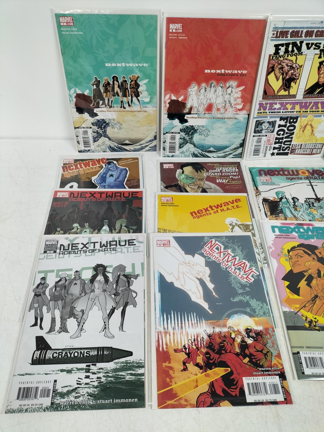 Collection of Marvel Nextwave 2006 Comics (14) to include Nos 1, 1 Directors Cut, 2, 3, 4, 5, 5 Variant, 6, 7, 8, 9, 10, 11, 12. Boarded and Bagged.