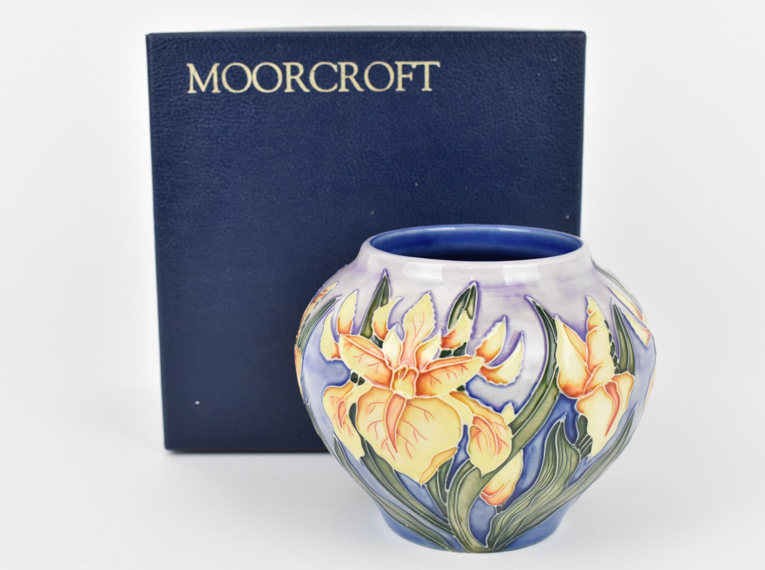 A Moorcroft pottery vase by Debbie Hancock in the 'Windrush' pattern, with impressed and painted marks to base (WM), dated 2000, in original box, 11cm high