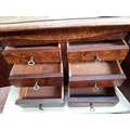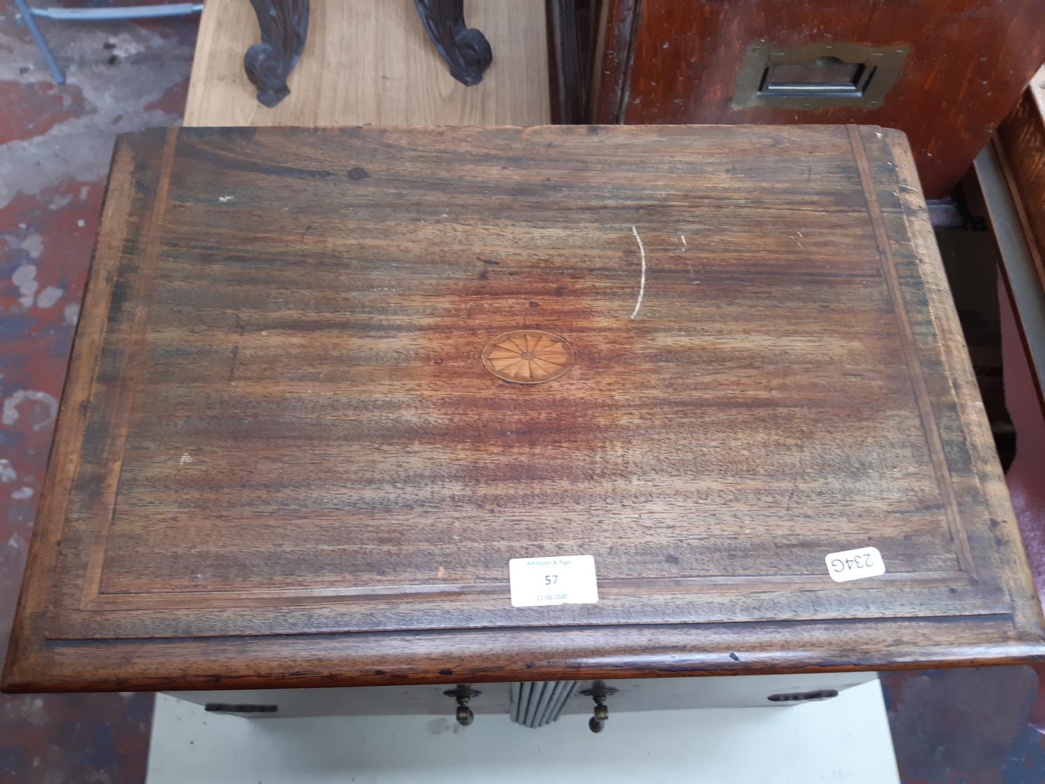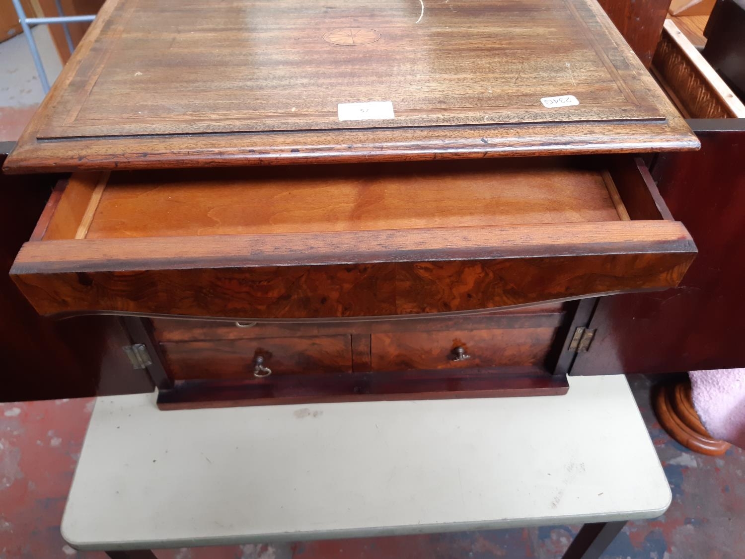 A Victorian inlaid mahogany collectors cabinet with two doors and six drawers and one concealed drawer with burr walnut fronts - measuring approx 47cm wide, 34.5cm high and 31.5cm deep